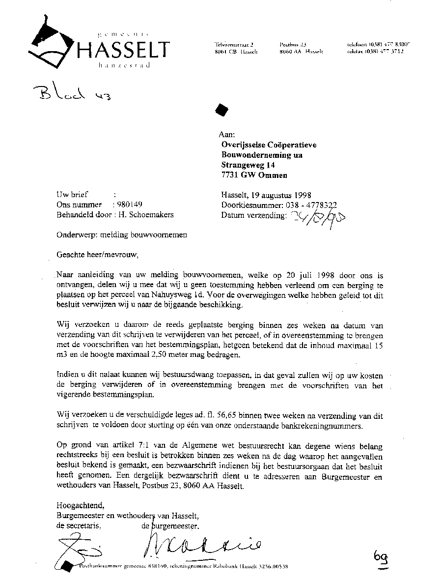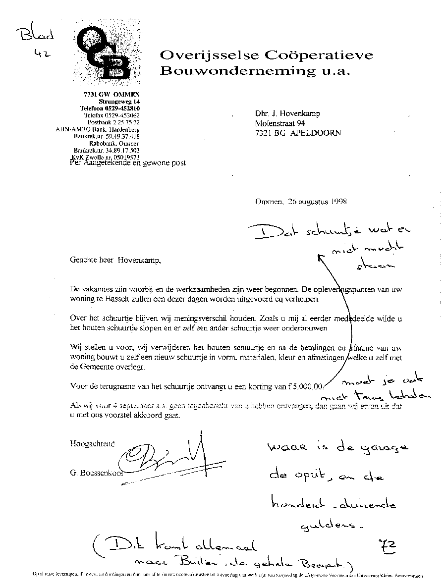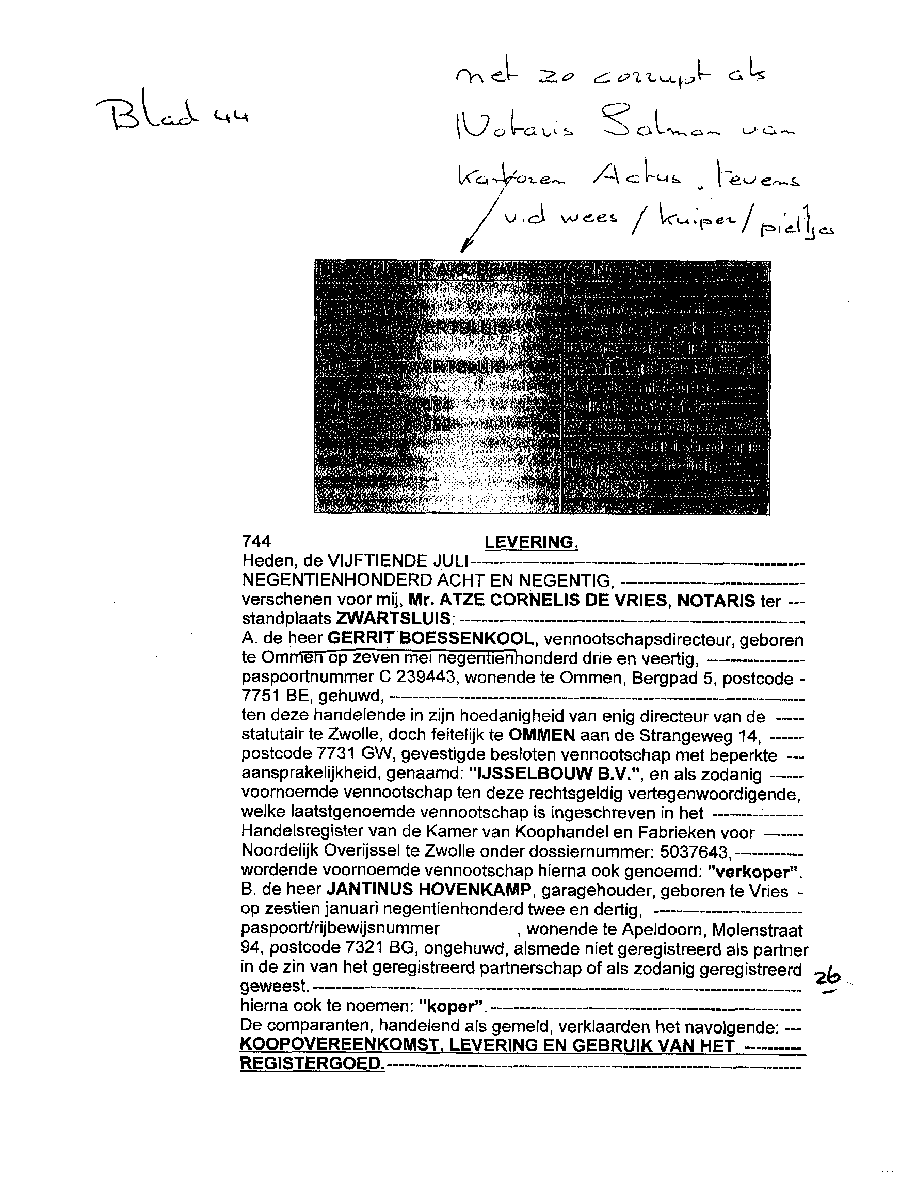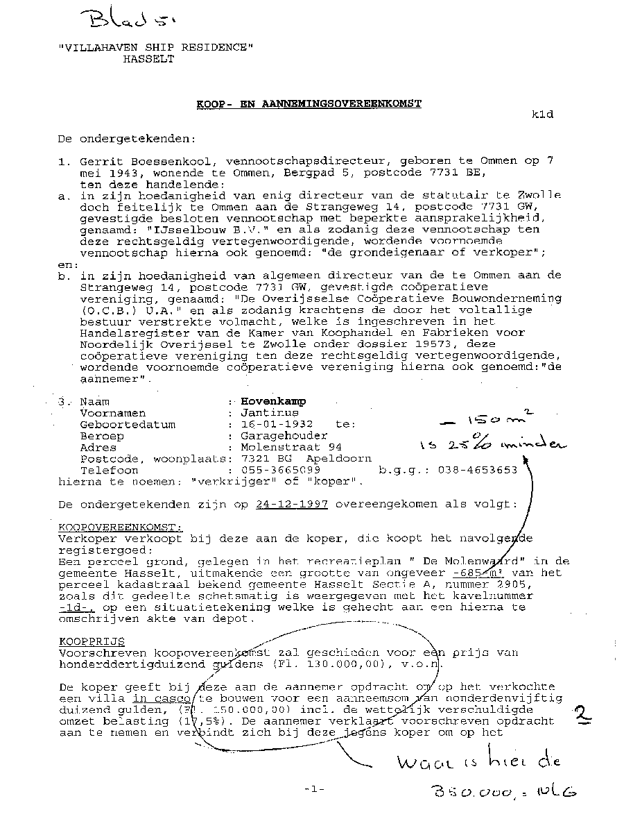 P.s.: Verder wenste Officier van Justitie C. de Jong mijn onrechtmatig in beslag genomen 42 ordners verbeurd te laten verklaren om deze te laten vernietigen, net als mijn computers. Daarop staan gegevens die door mij en op verzoek van de overheidsinstellingen zijn samengesteld om o.a. door de FIOD rechtszaken te kunnen starten tegen kampers, vastgoedboeven en bouwers, enz. Dat per se willen vernietigen van bewijsmateriaal heeft dus niets te maken met hetgeen zij in Alkmaar hebben geprobeerd mij aan te hangen.