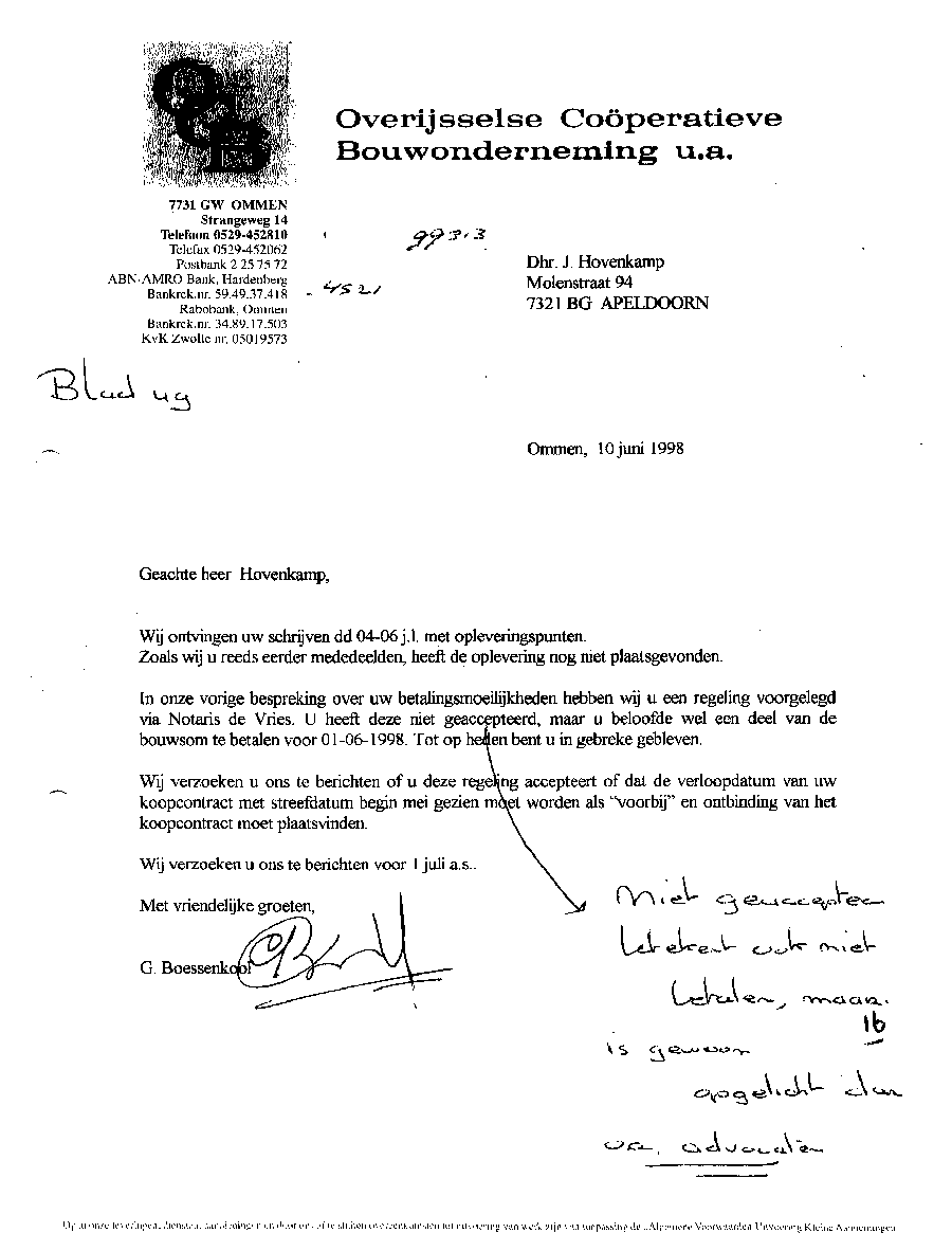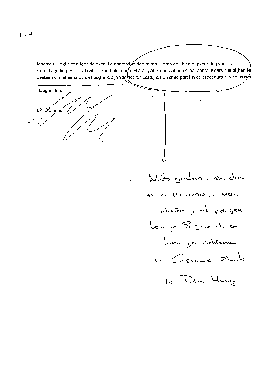Verwijt aan mr. Sigmond over z'n inactiviteit. Wel betalen, maar niet kunnen halen!
