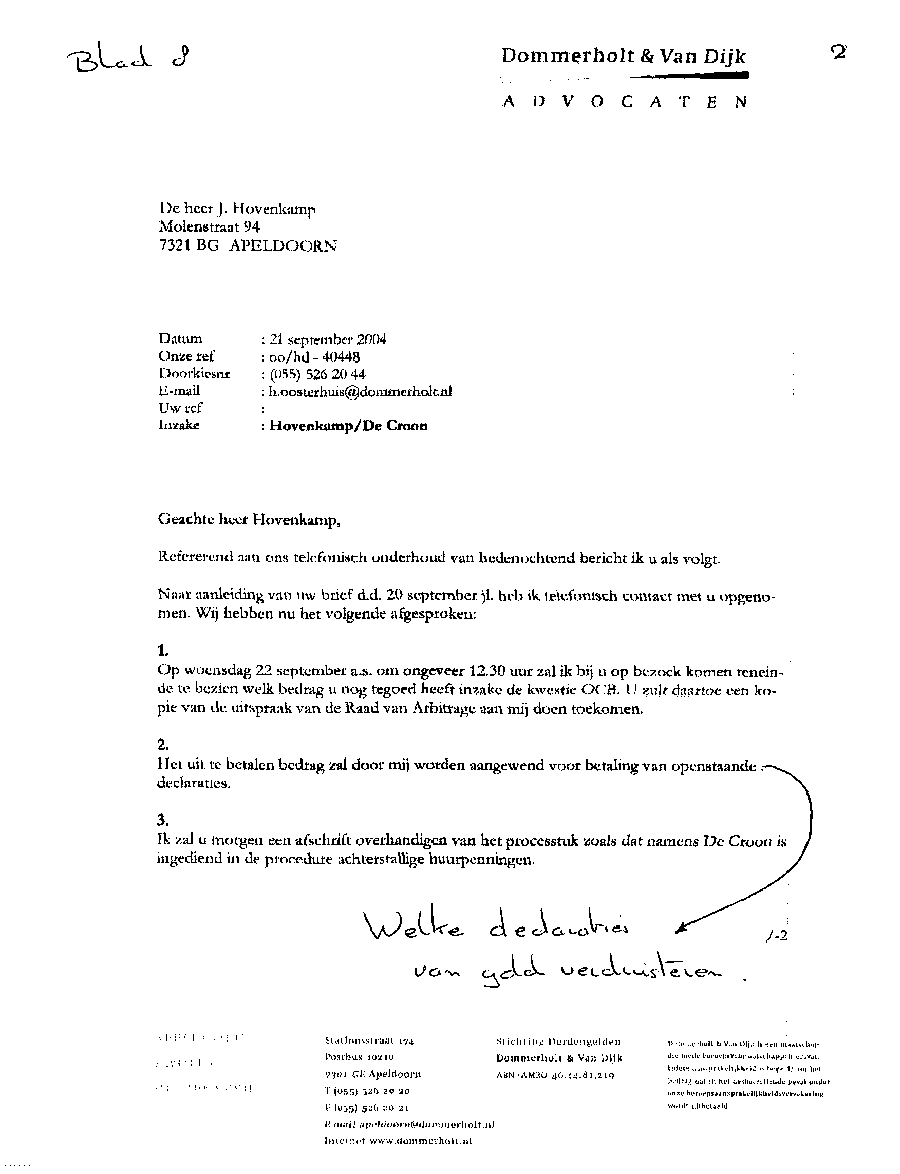 Briefwisseling van advocatenkantoor Dommerholt & van Dijk en st. SDN