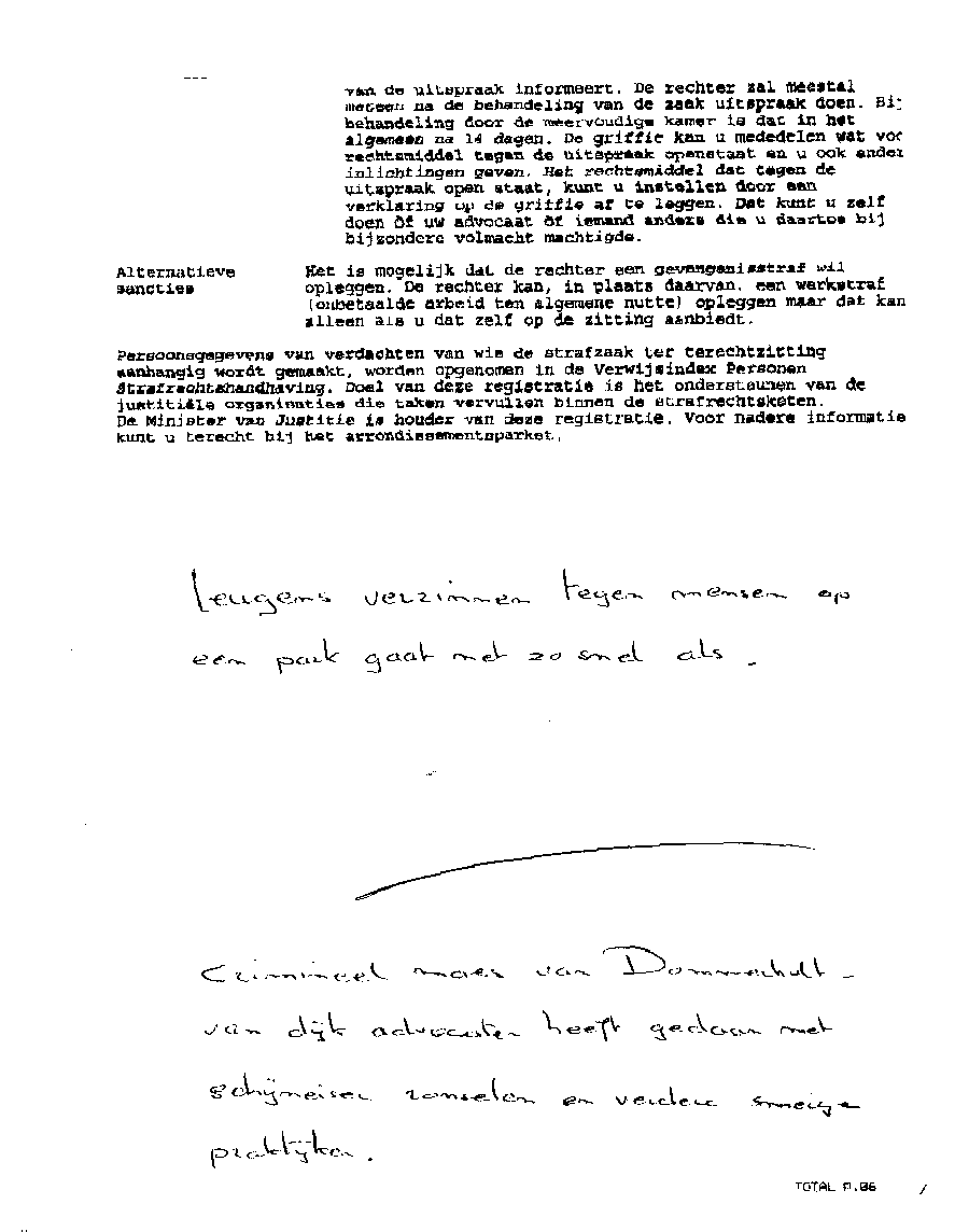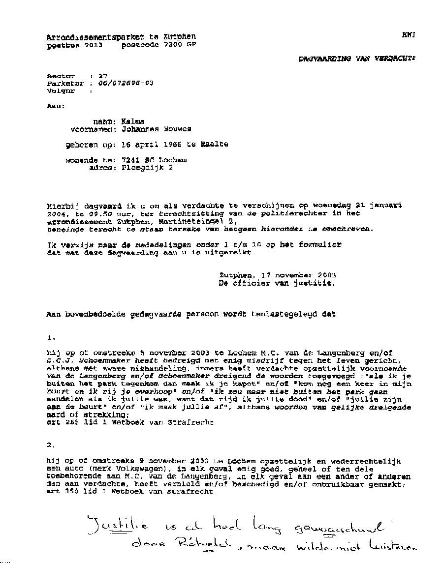 Document met procedure tegen mr. Maes van Dommerholt & van Dijk in Zwolle