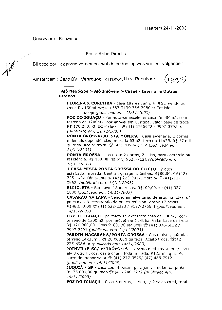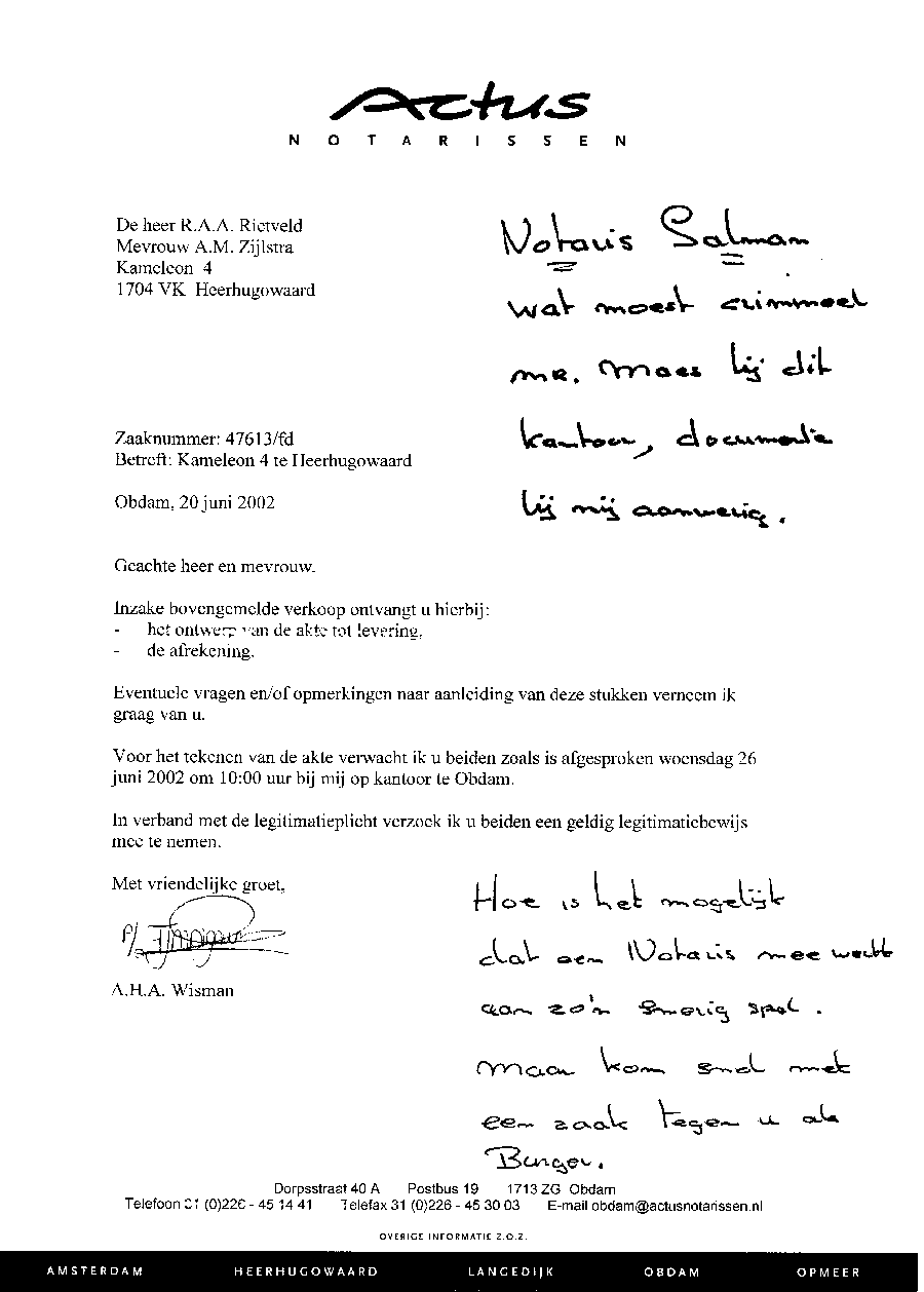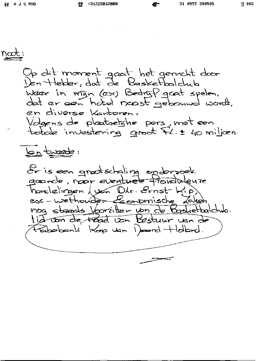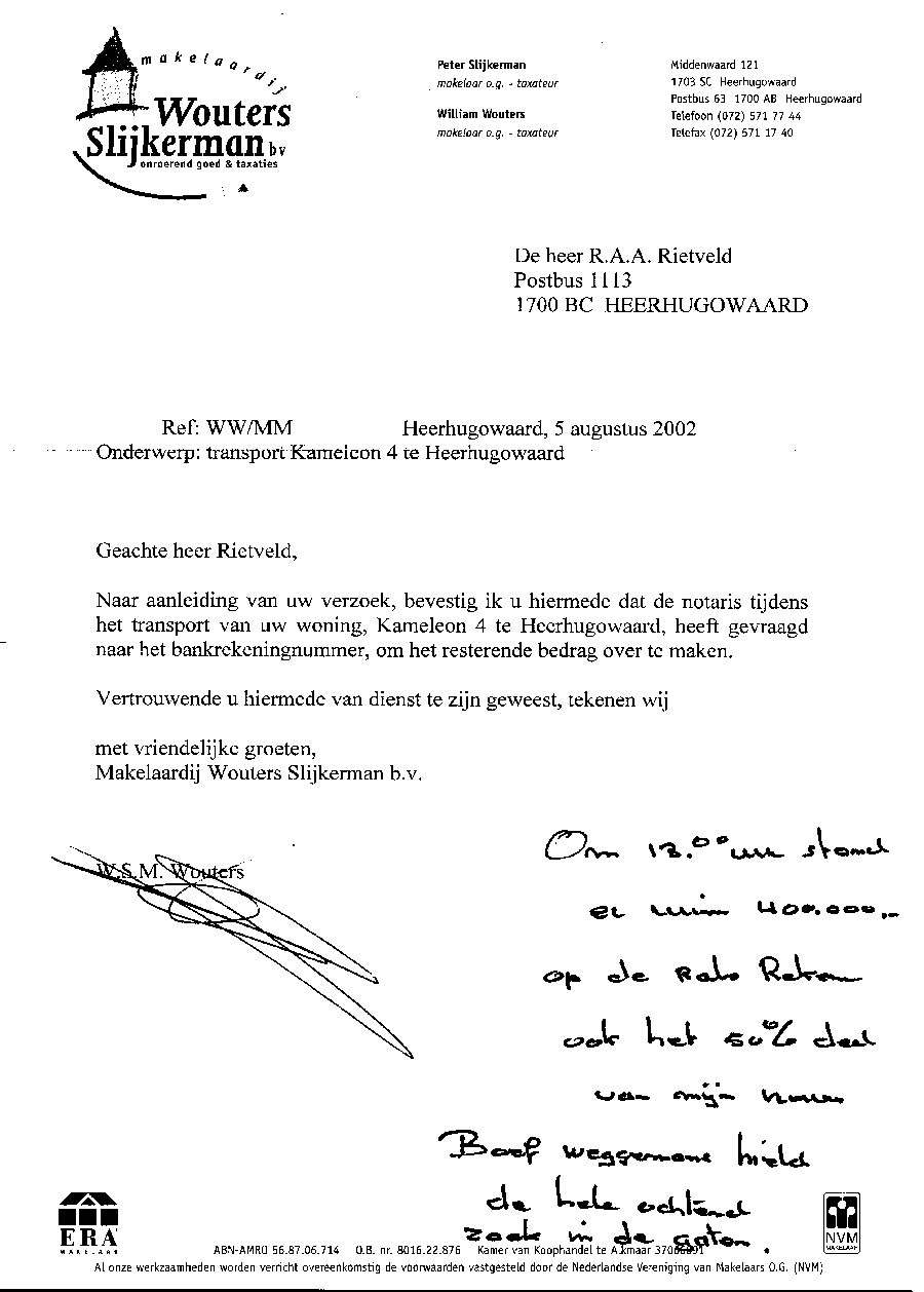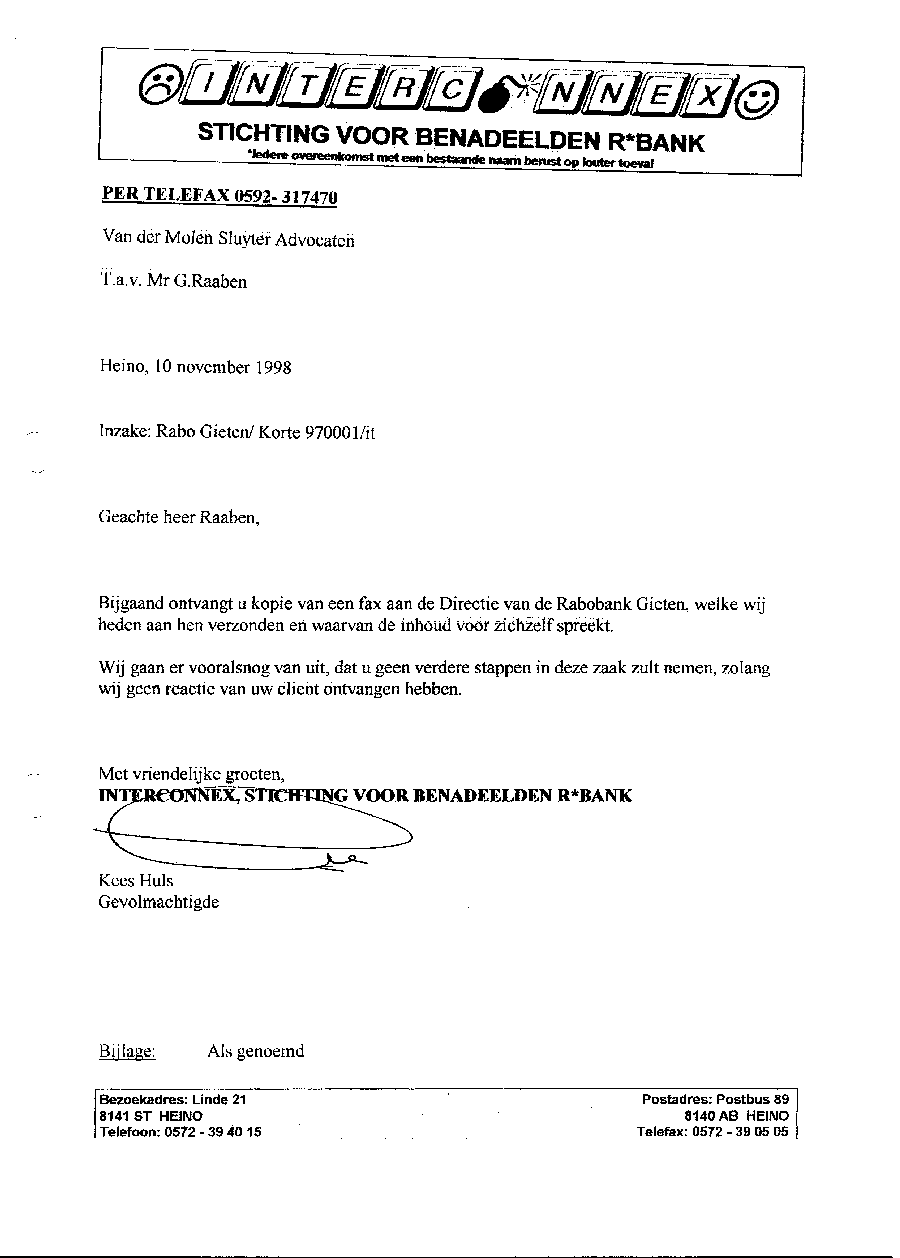 Faxbericht aan mr. Maes van Kees Griesdoorn over schijneisers