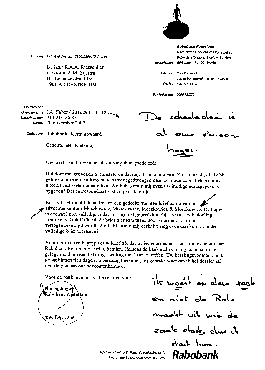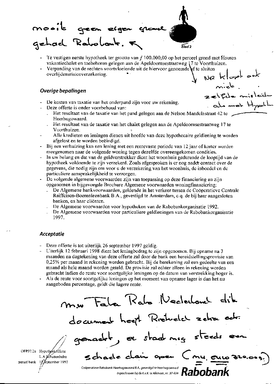 Bewijs van verstrengeling van de Rabobank met de beleggers in de recreatieparken