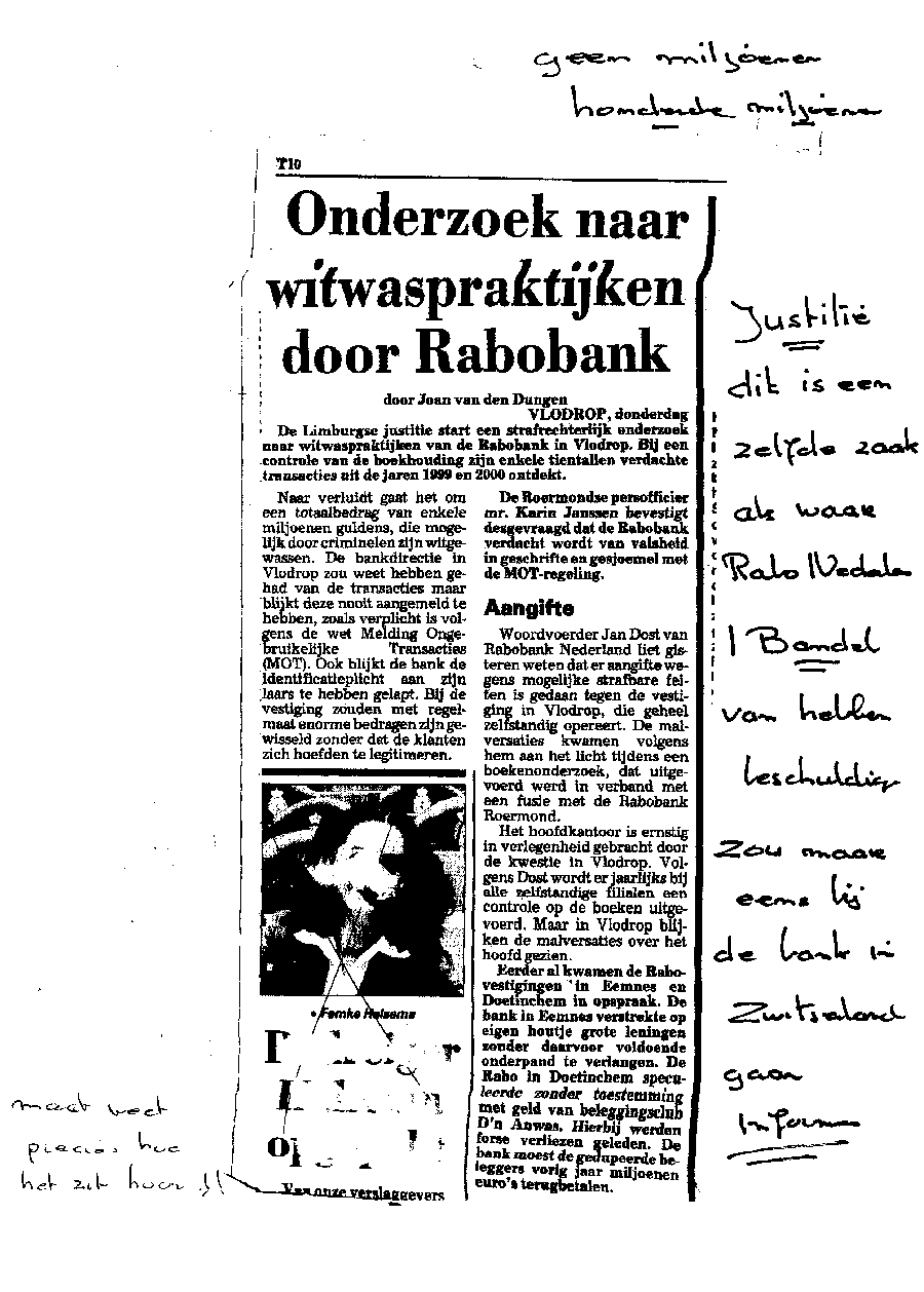Overzicht van publicaties in de Telegraaf over financiële schandalen bij de Rabobank