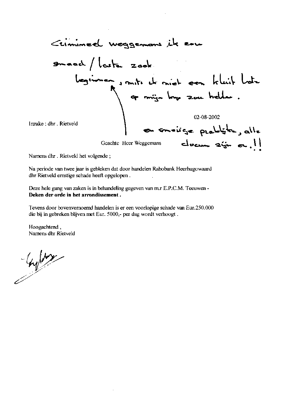 Verwijt aan mr. Sigmond over z'n inactiviteit. Wel betalen, maar niet kunnen halen!