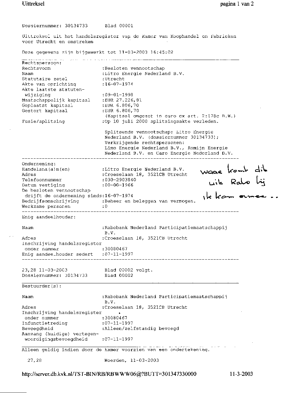 Achtergrond over de handelsregisterhistorie van Aegon Recreatie BV