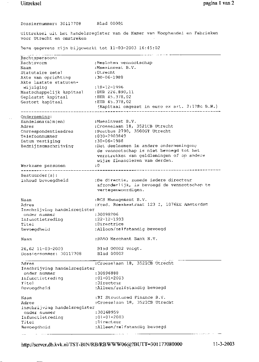 Kadastergegevens Kamer van Koophandel van conglomeraat van parken van Bergervoet sr.