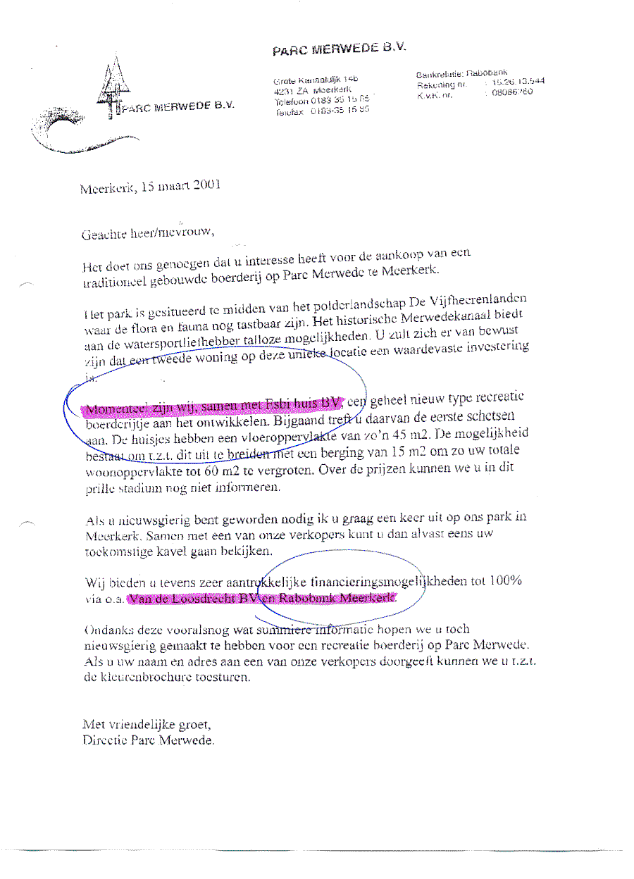 Bewijs van verstrengeling van de Rabobank met de beleggers in de recreatieparken