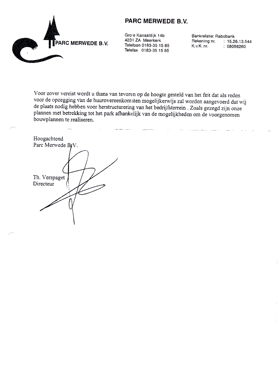 Voorlopige conclusie van Rietveld aan de recreanten en semi-permanente bewoners