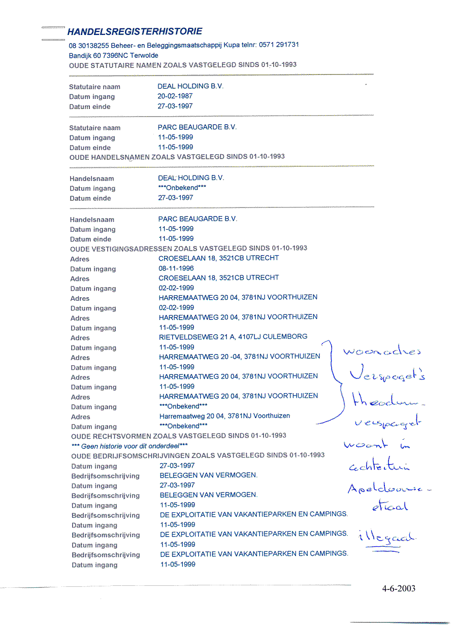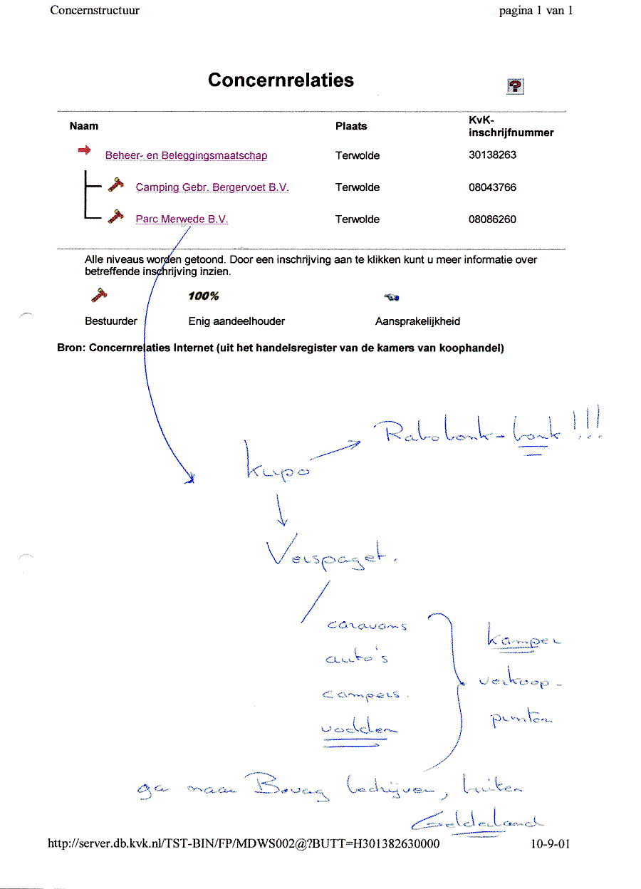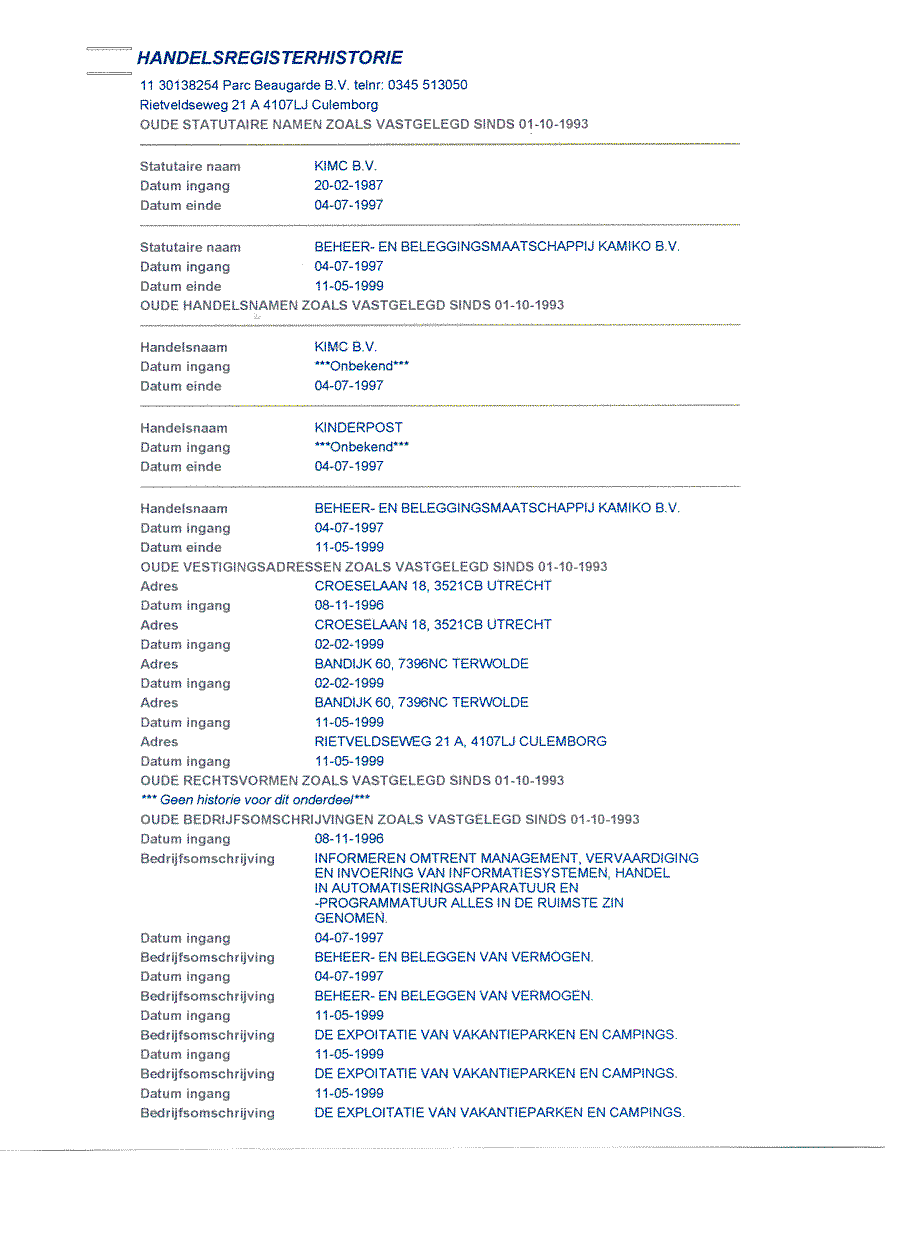 Kadastergegevens Kamer van Koophandel van conglomeraat van parken van Bergervoet sr.