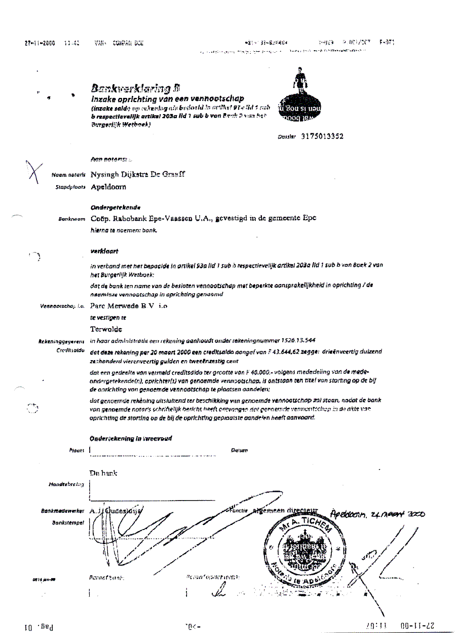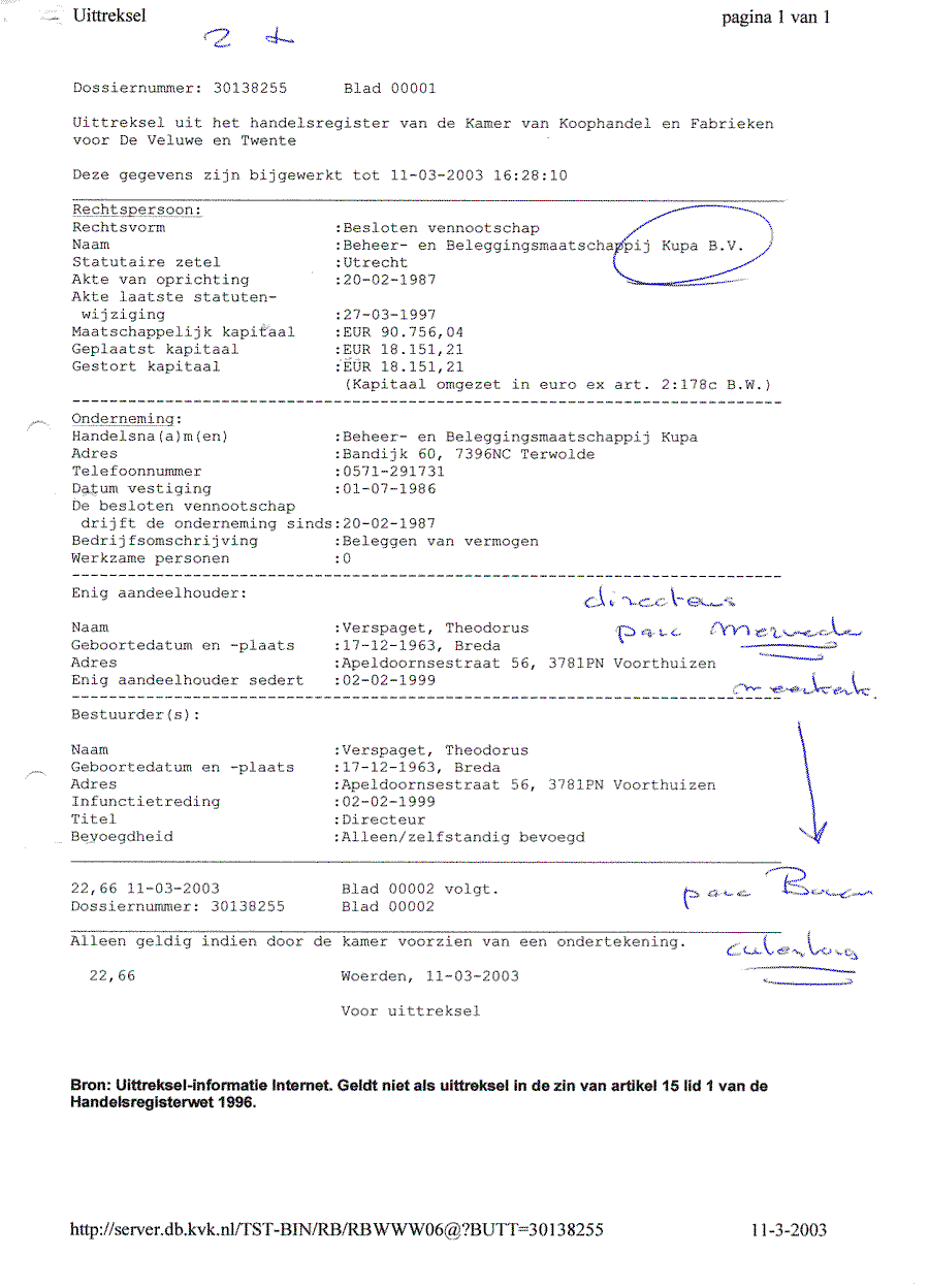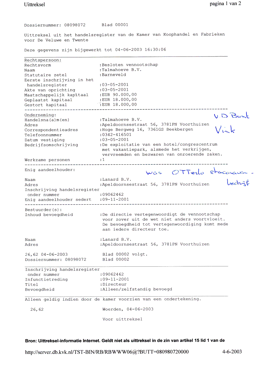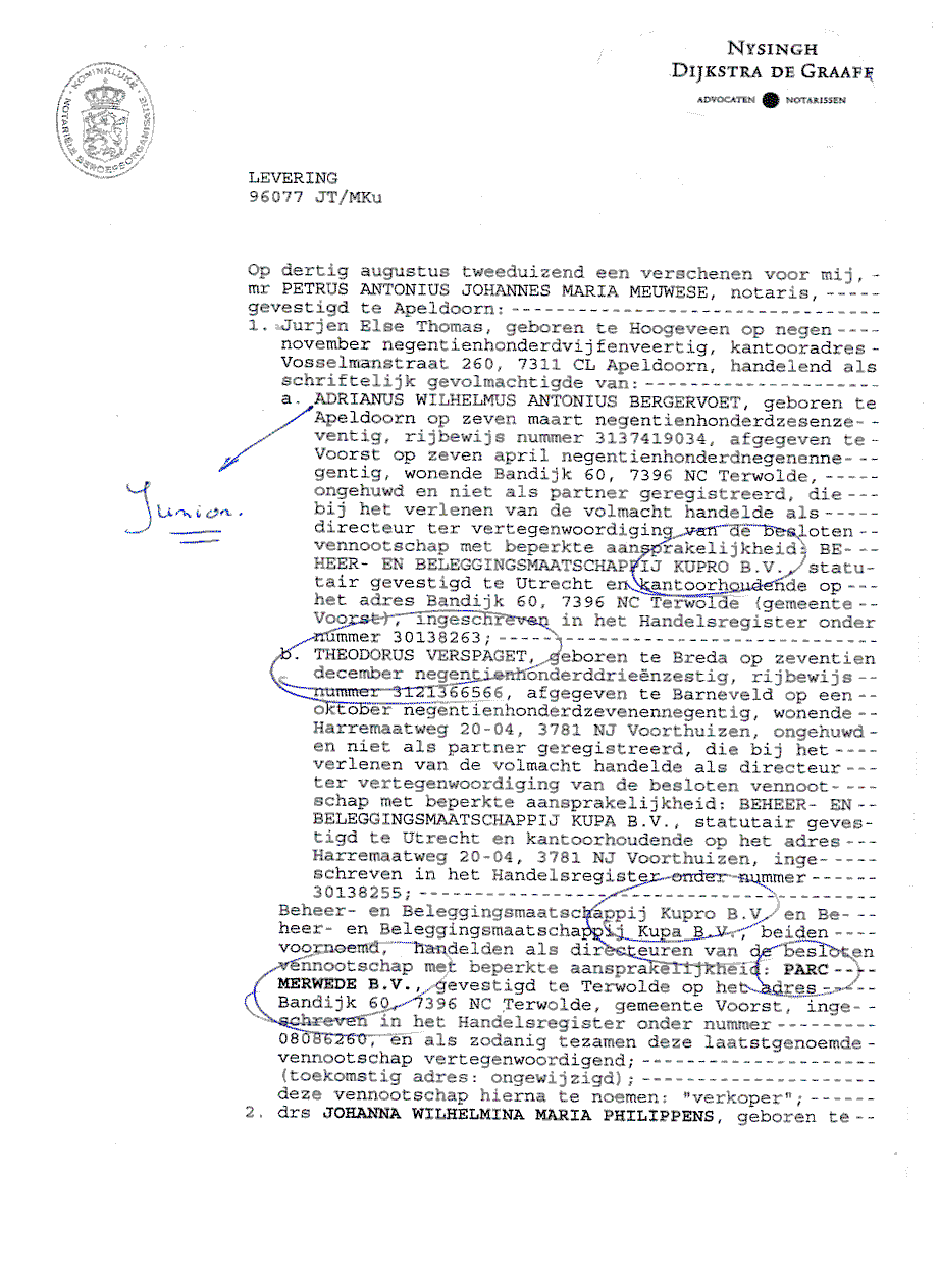 Kadastergegevens Kamer van Koophandel van conglomeraat van parken van Bergervoet sr.