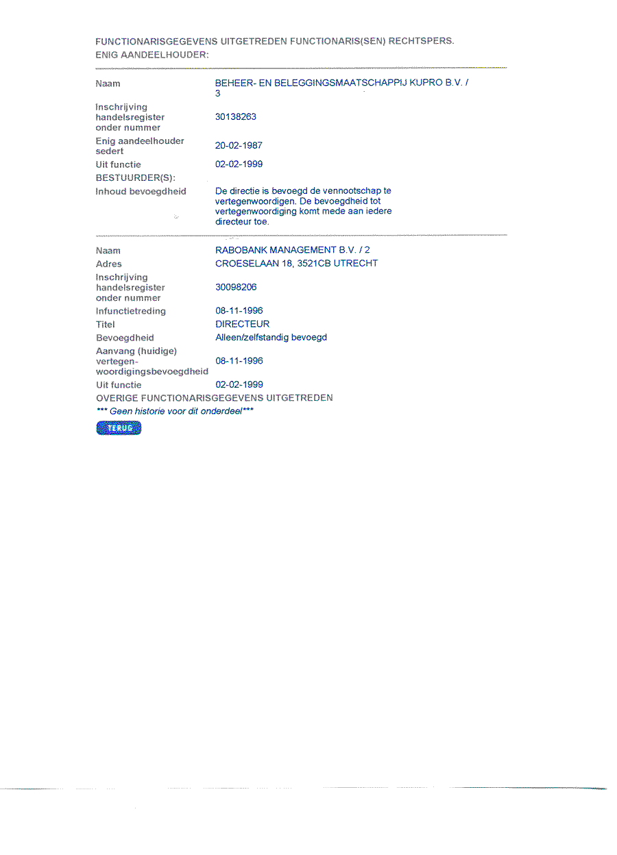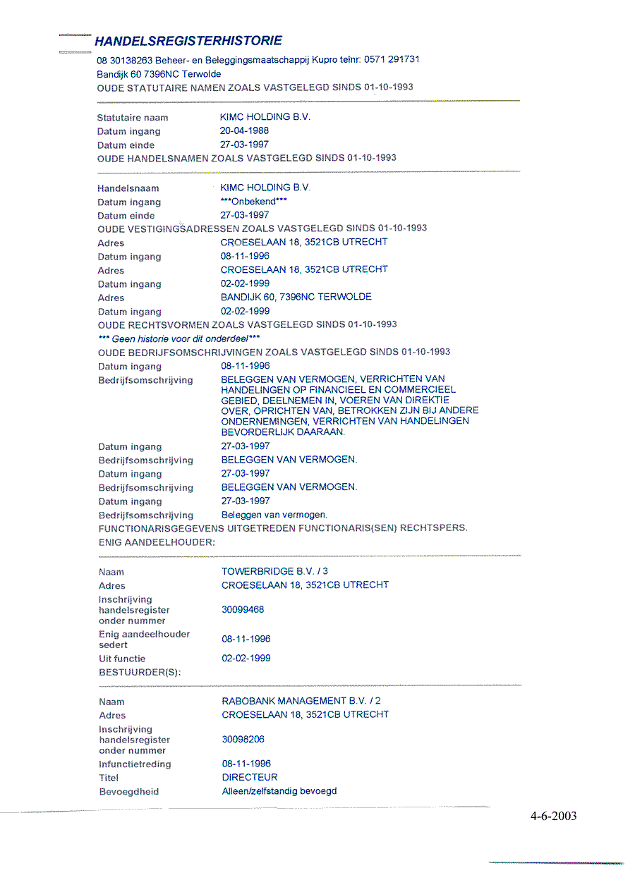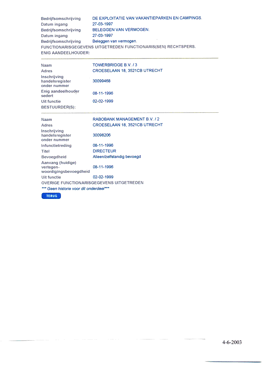 Achtergrond over de handelsregisterhistorie van Aegon Recreatie BV
