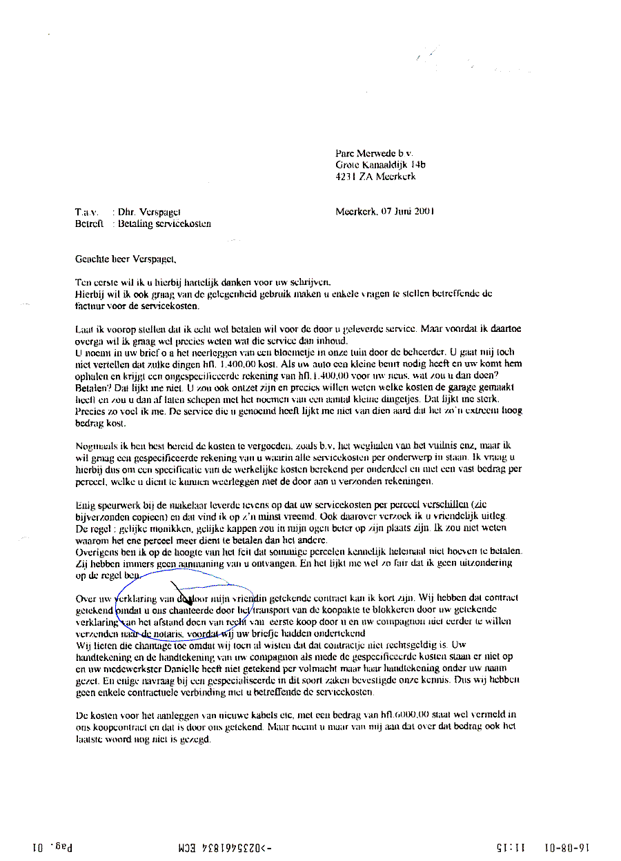Faxbericht aan mr. Maes van Kees Griesdoorn over schijneisers