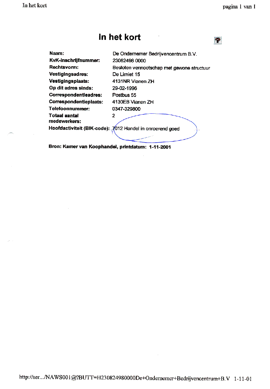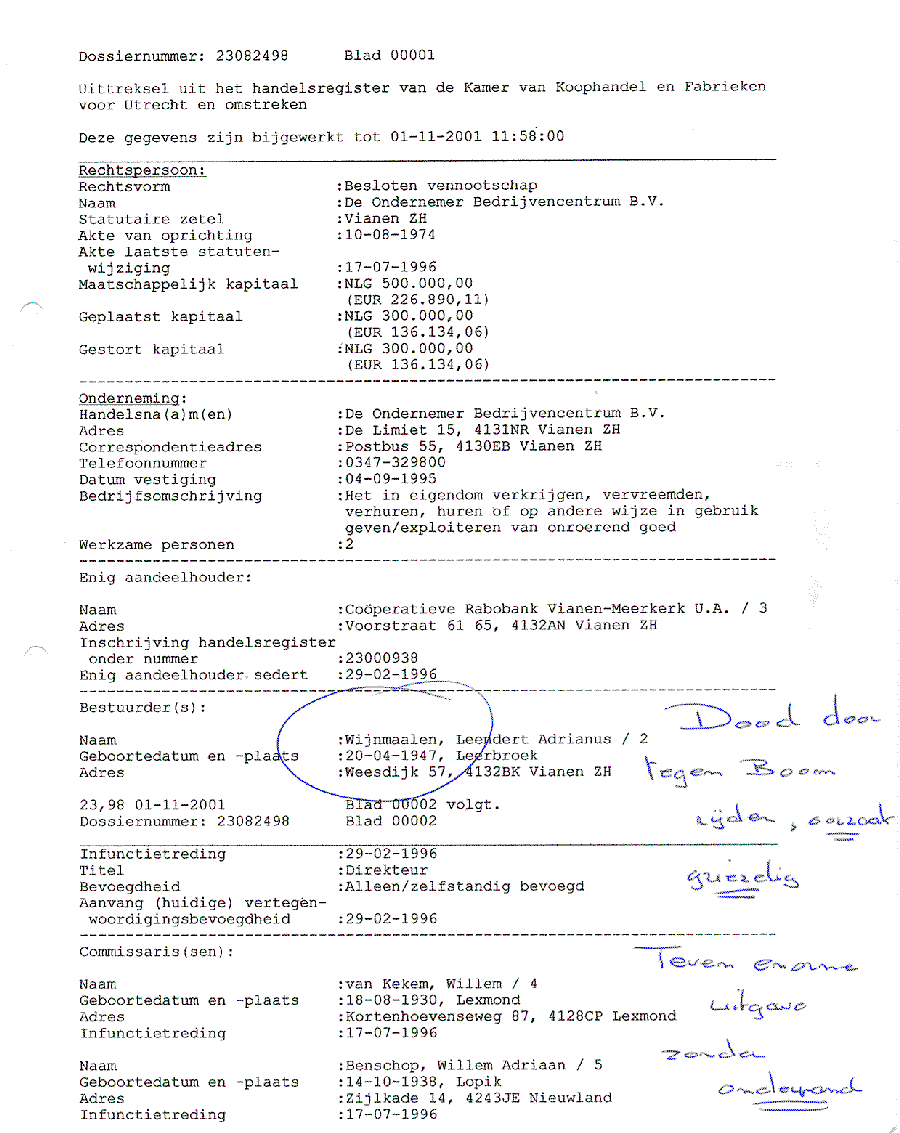 Kadastergegevens Kamer van Koophandel van conglomeraat van parken van Bergervoet sr.