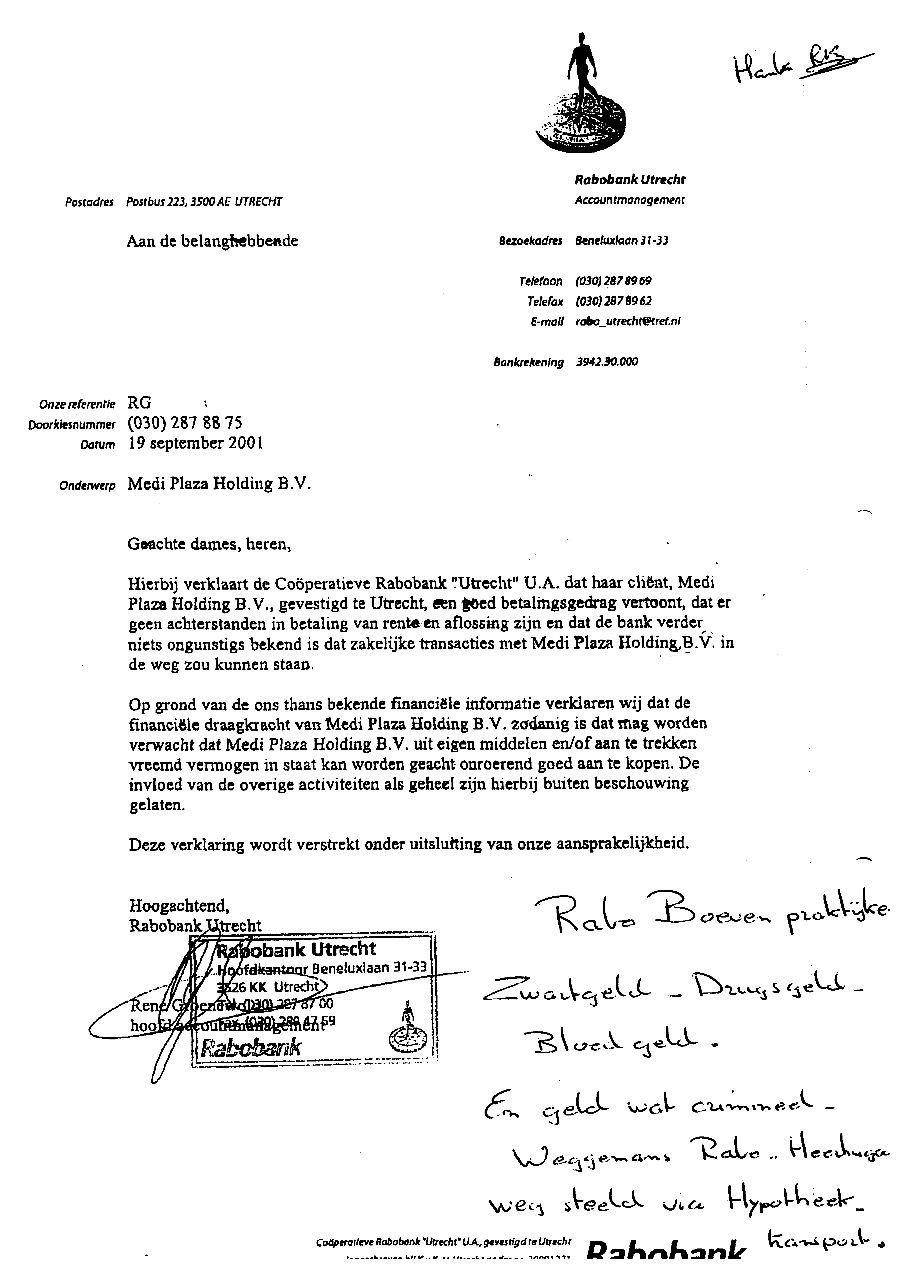 Bewijs van verstrengeling van de Rabobank met de beleggers in de recreatieparken