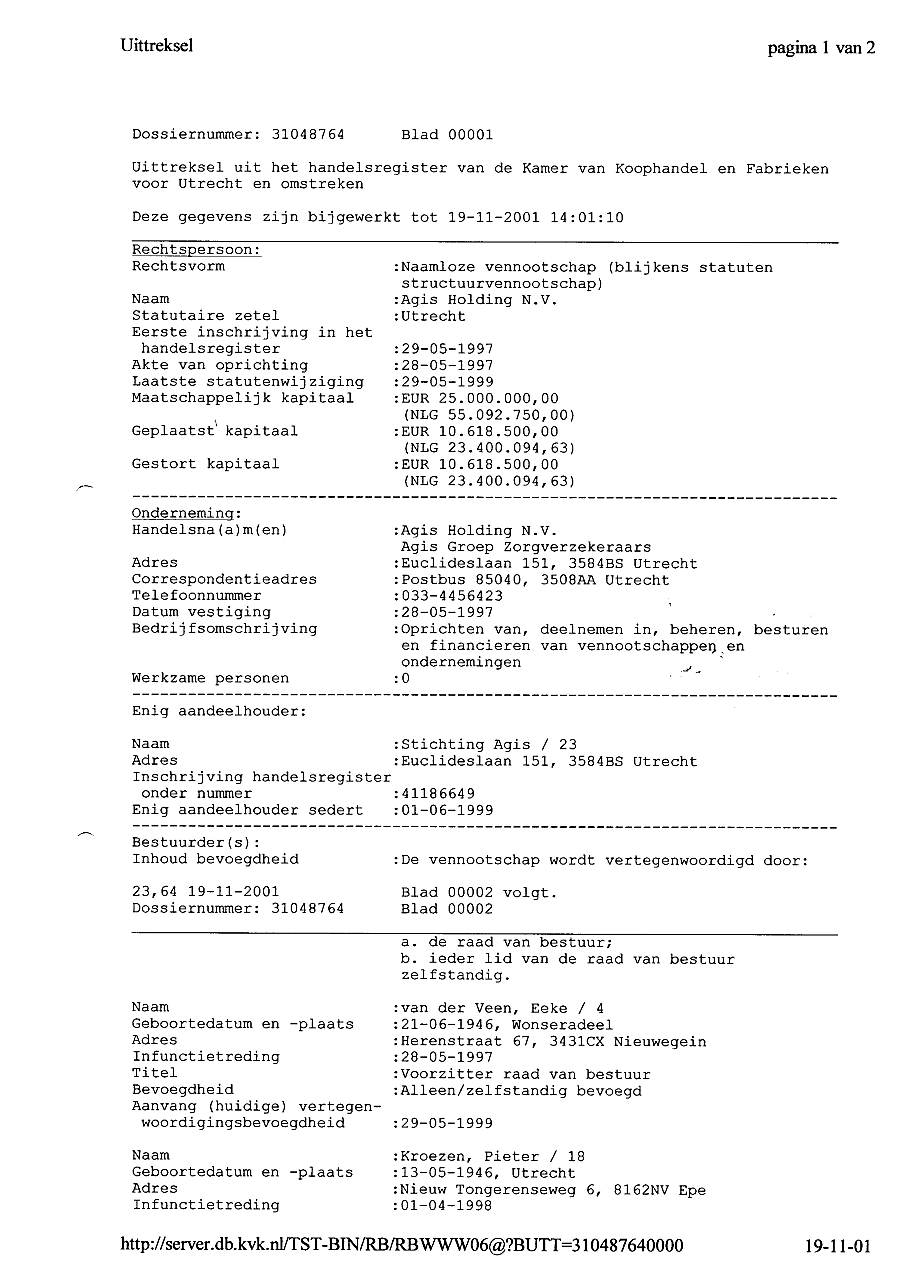 Achtergrond over de handelsregisterhistorie van Aegon Recreatie BV