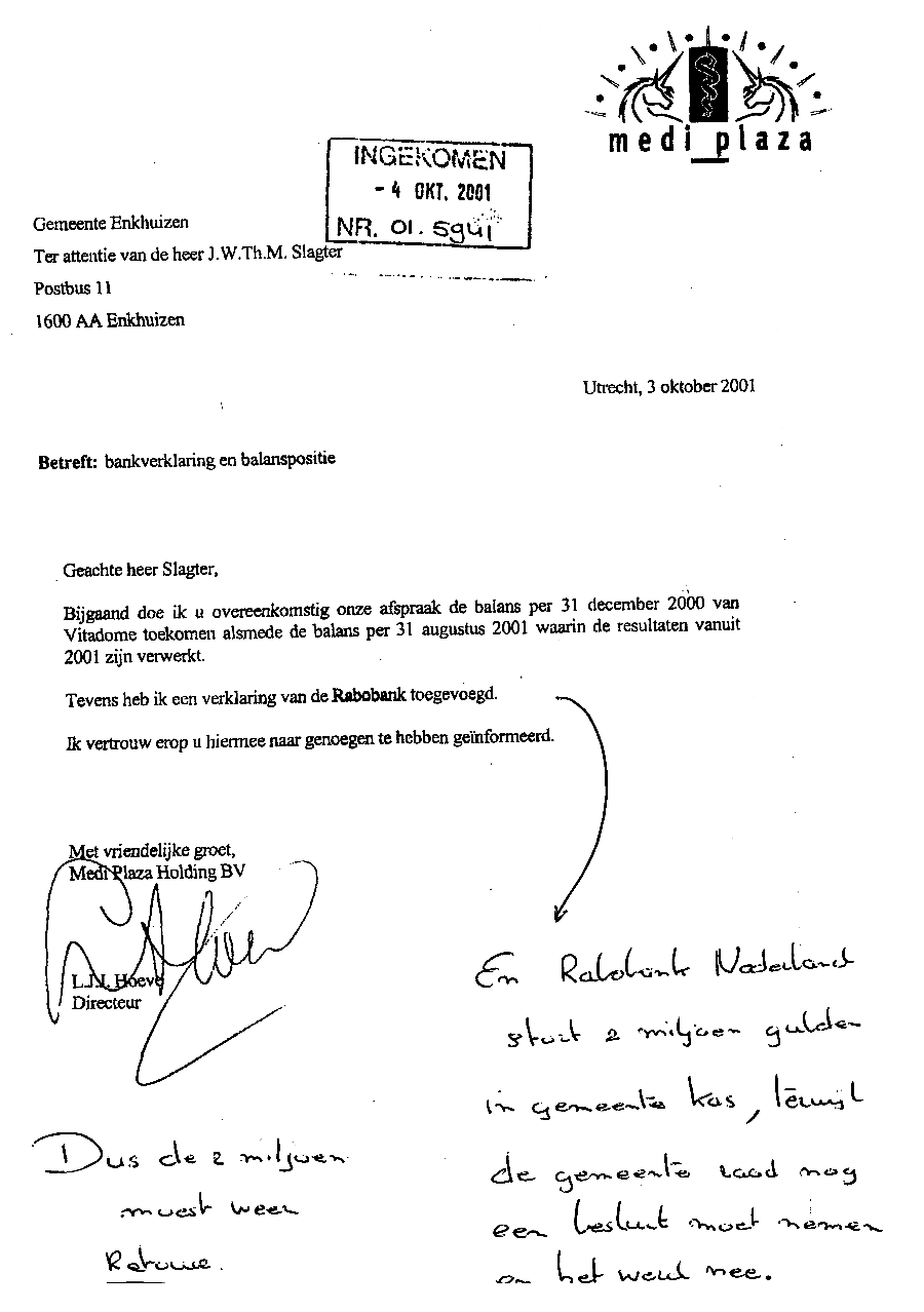 Aangetekende brief aan Kamervoorzitter Frans Weisglas (geen antwoord)