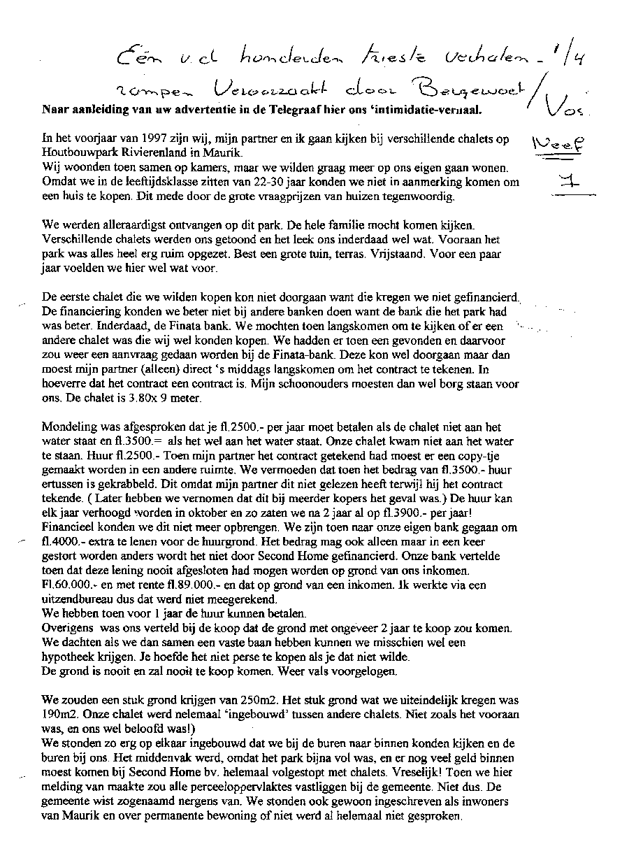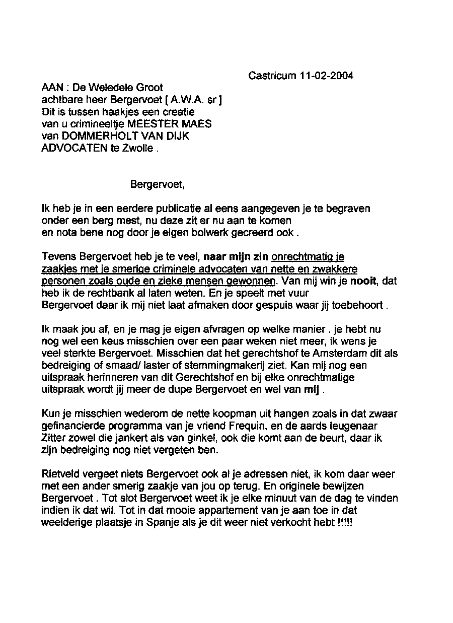 Document met procedure tegen mr. Maes van Dommerholt & van Dijk in Zwolle