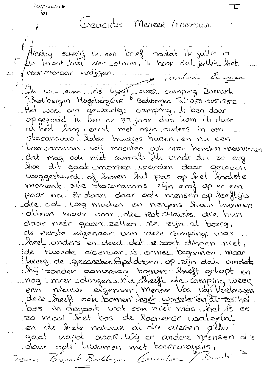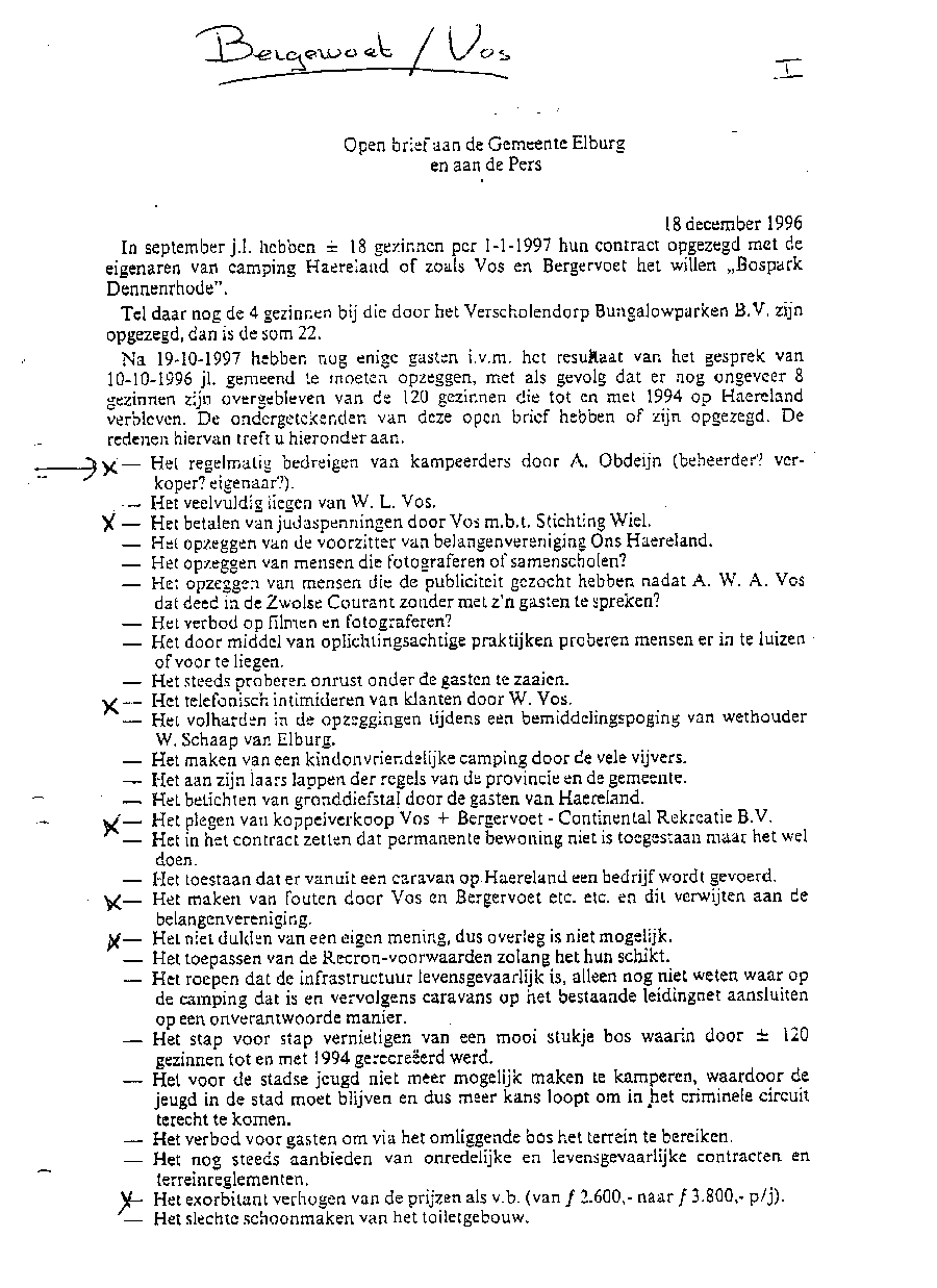 Open brief aan de gemeente Elburg en de pers over Bospark Dennenrhode