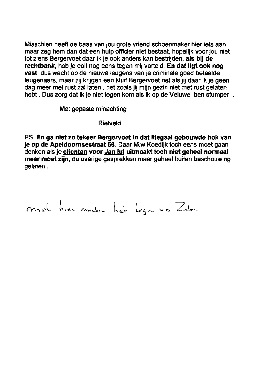 Een serie losse aantijgingen tegen mij (Rietveld) wegens onjuiste, vermeende kwalijke zaken