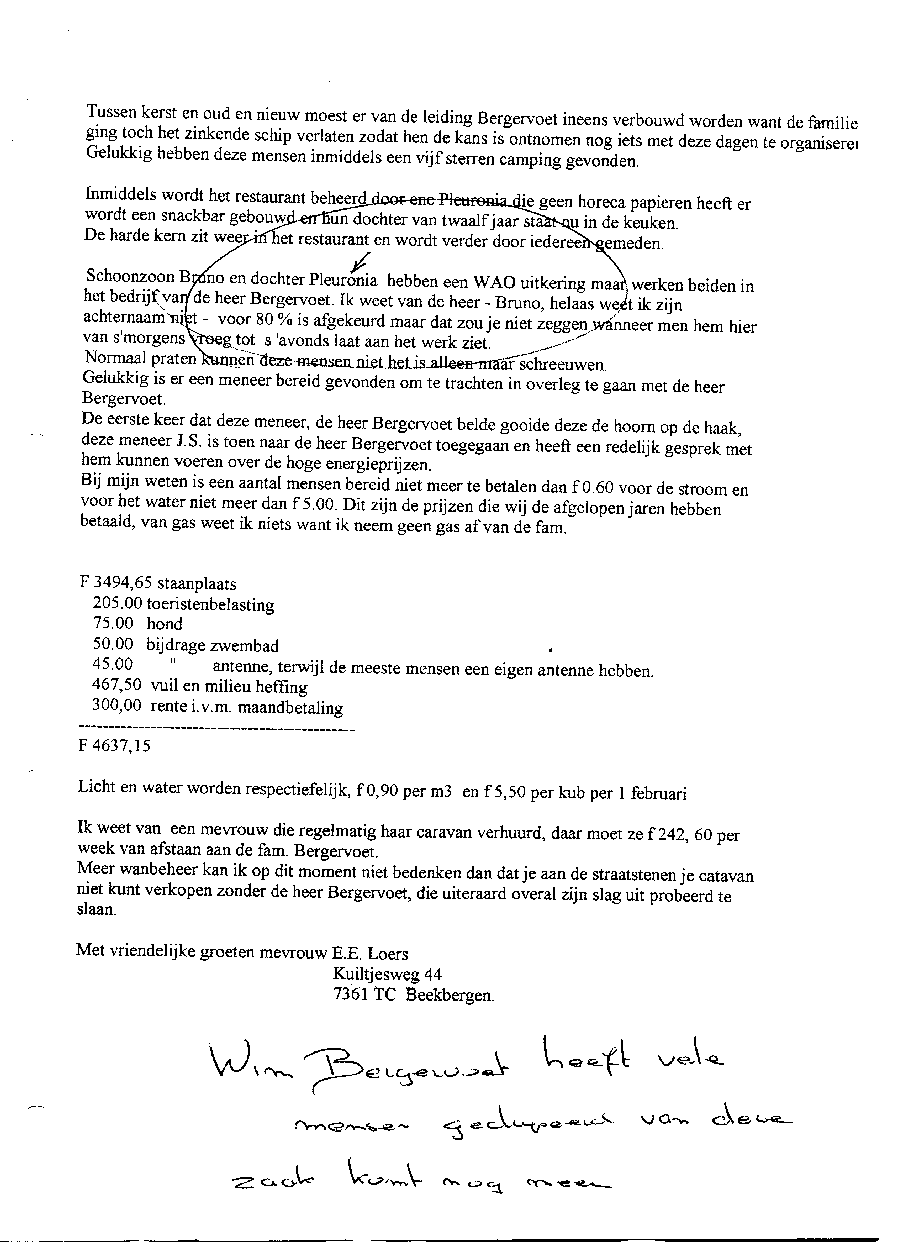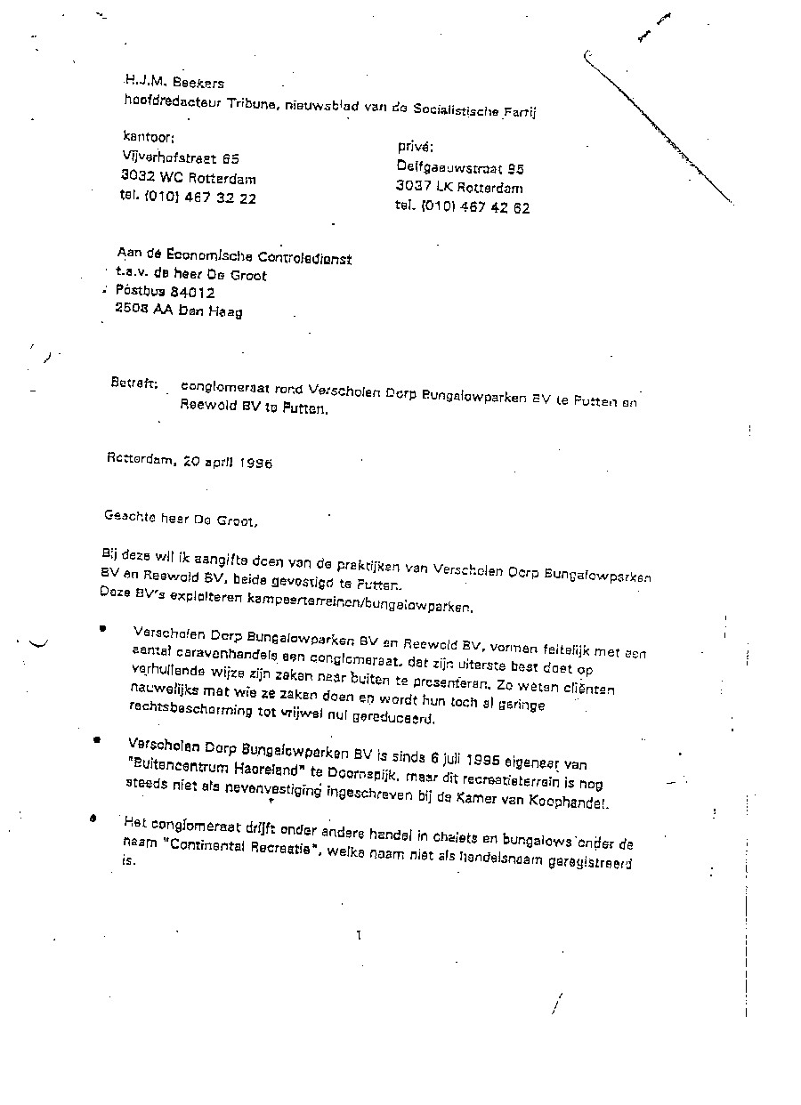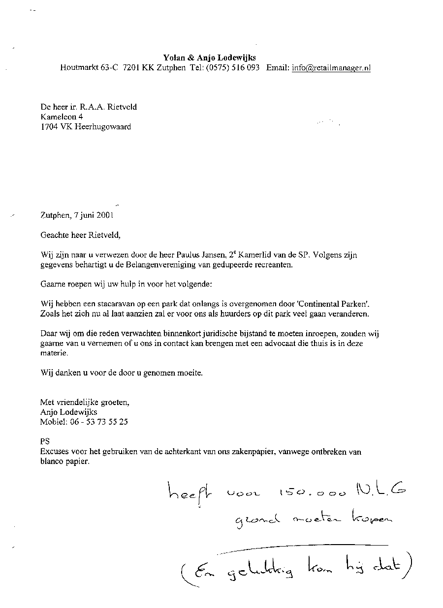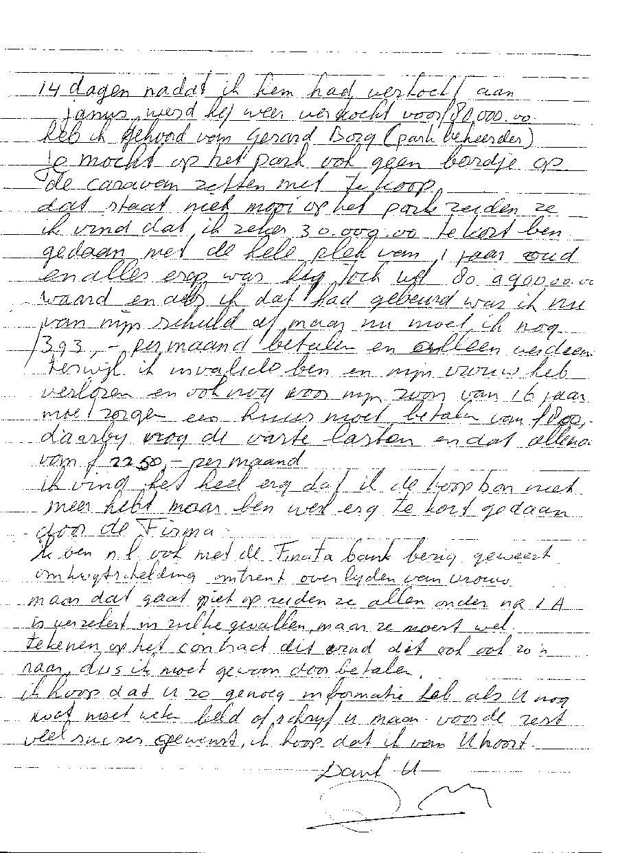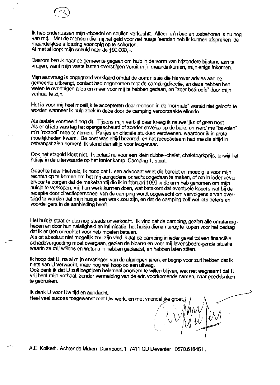 Daarbij heeft hij in opdracht en met zwendelpraktijken sociaal en maatschappelijk grote schade aangericht. Hij heeft fiscaal en financieel rendement behaald voor de grote financiers op de achtergrond. De grote geldmachine ondersteund door een leger van advocaten en notarissen (binnen de organisaten) hebben met het als maar rond en doorverkopen van de projecten de fiscale belasting die iedereen moet betalen weten te ontwijken. Rijk worden doe je door de maatschappij (fiscus) en onwetende mensen met chicanes grootselijk te bestelen. Voorbeelden daarvan zijn er in overvloed. De juristerij van grof betaalde advocaten beschadigde en beschadigt nog steeds tienduizenden mensen die dachten op een recreatiepark te kunnen genieten van hun rust met een aangekochte caravan of chalet met hun zuurverdiende centjes.