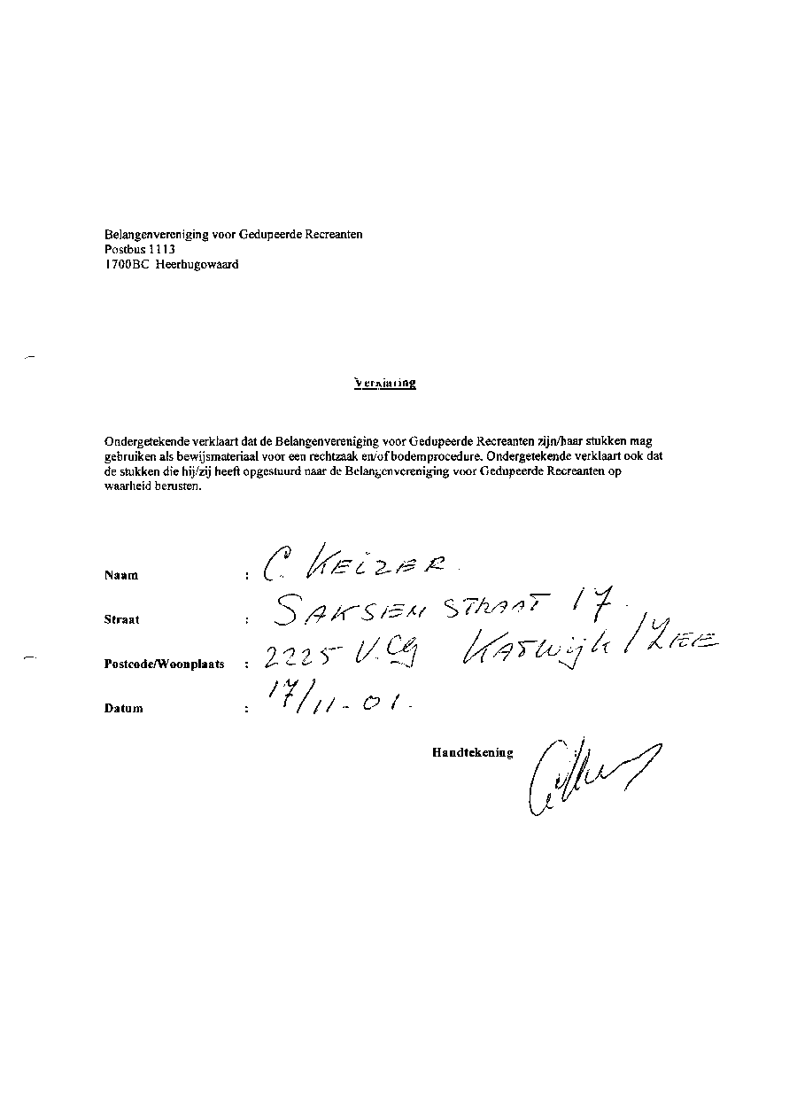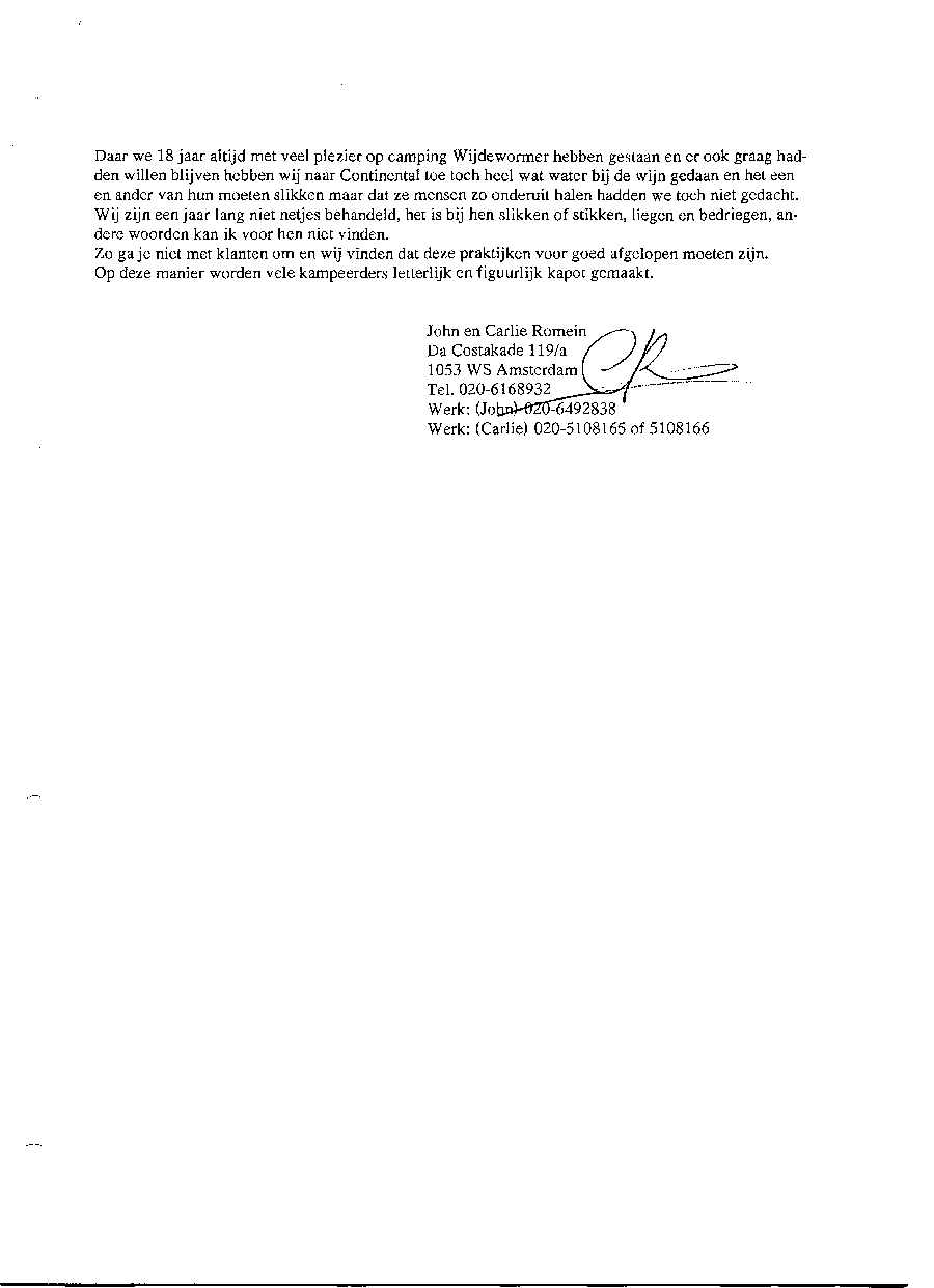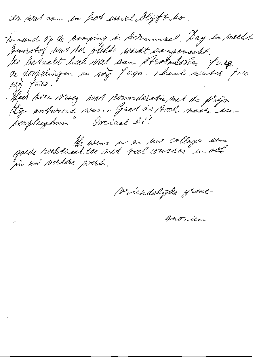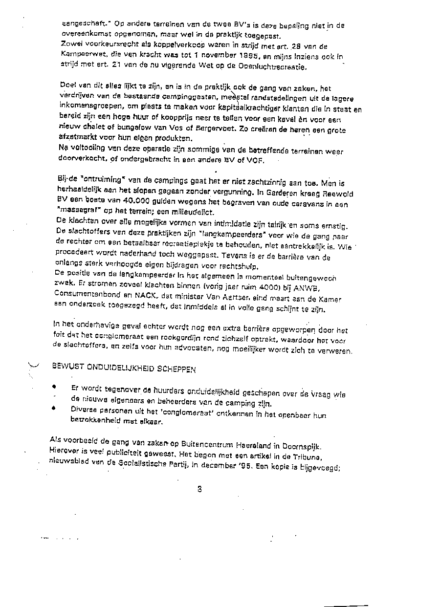 Voorlopige conclusie van Rietveld aan de recreanten en semi-permanente bewoners