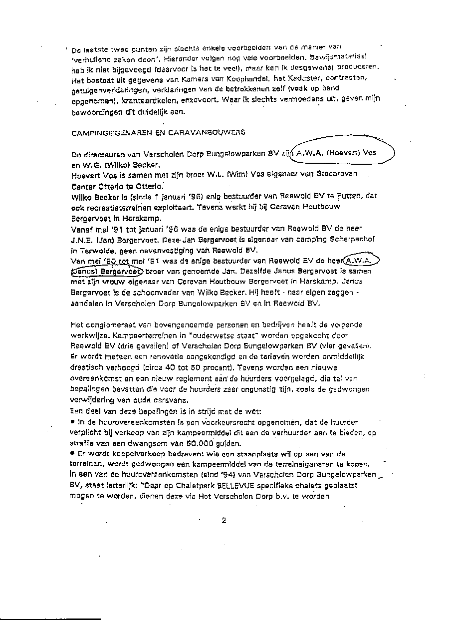 Bewijs van verstrengeling van de Rabobank met de beleggers in de recreatieparken