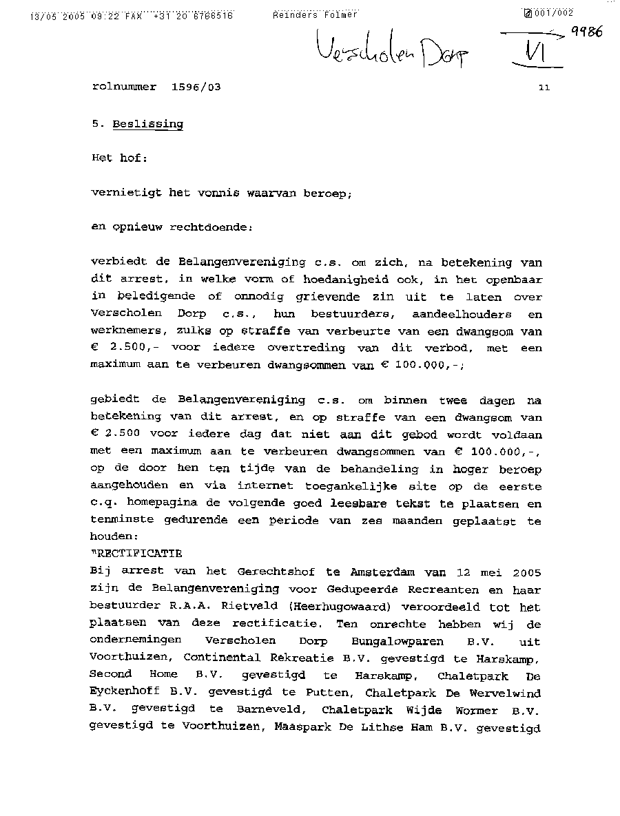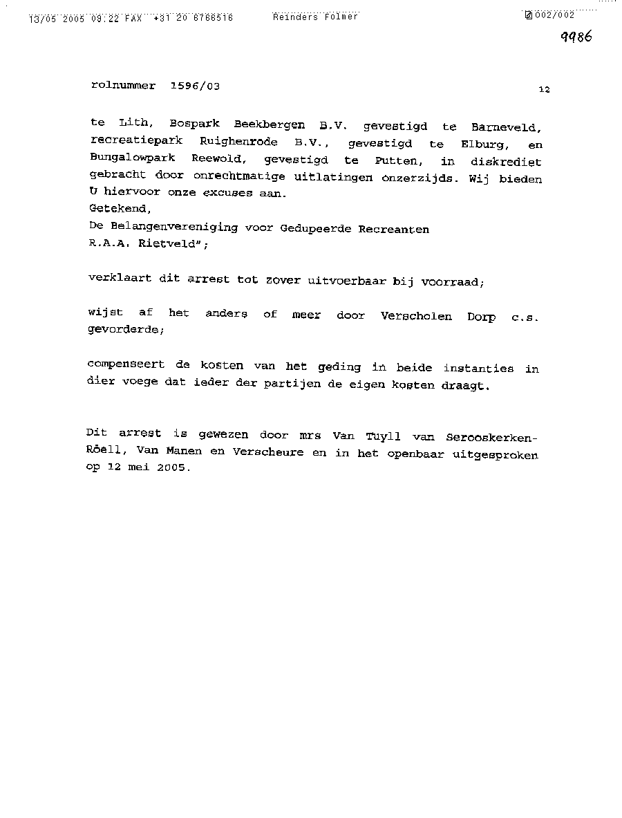 Heer Schipper en Mevrouw Tull van Serooskerken bij deze laat ik u weten dat er niet 1 procent recht meer in Nederland bestaat. U en uw raadsheren hebben de tegenpartij in het gelijk gesteld in deze hoger beroepzaak. Een zaak waarbij criminele kampers met hun smerige leugenachtige en criminele advocaten als oplichter Maes fraudeerden, nadat ik de bodemprocedure had gewonnen met de uitspraak door drs. Blokland gedaan in Alkmaar.
