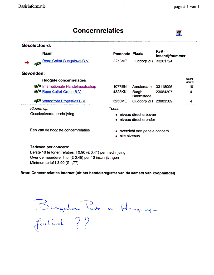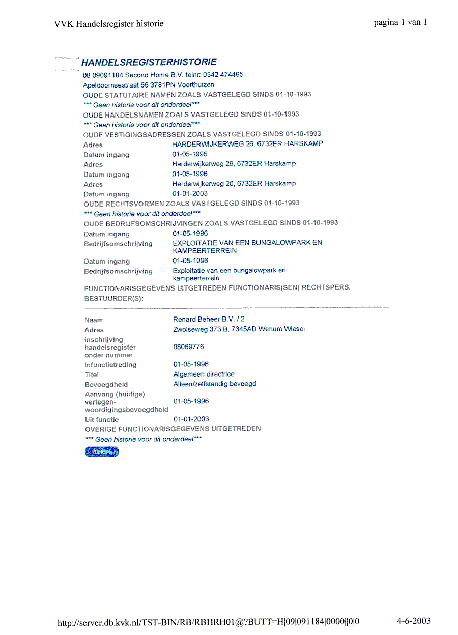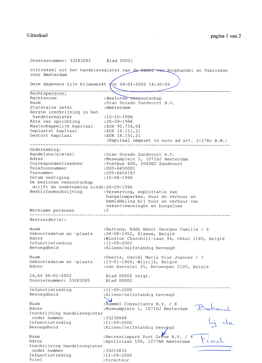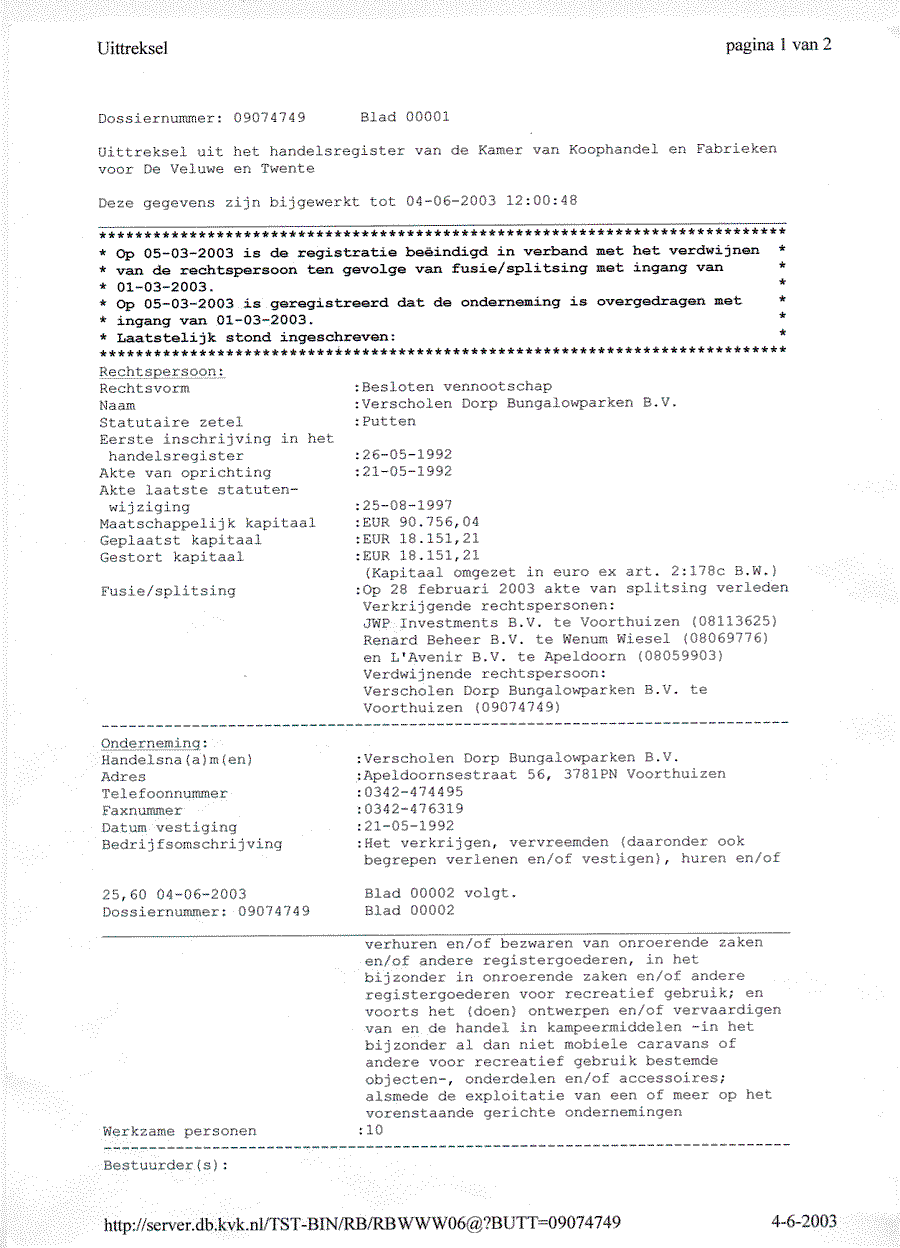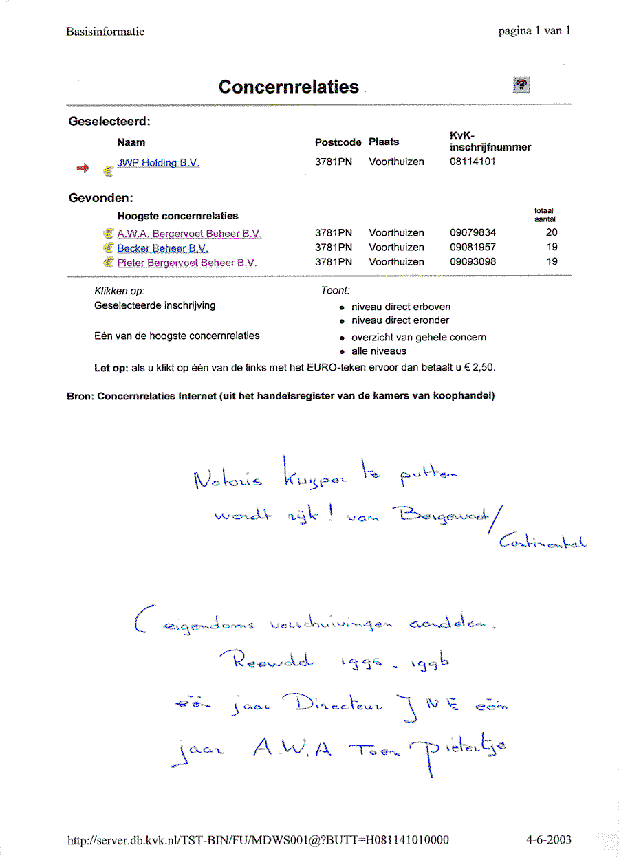 Kadastergegevens Kamer van Koophandel van conglomeraat van parken van Bergervoet sr.