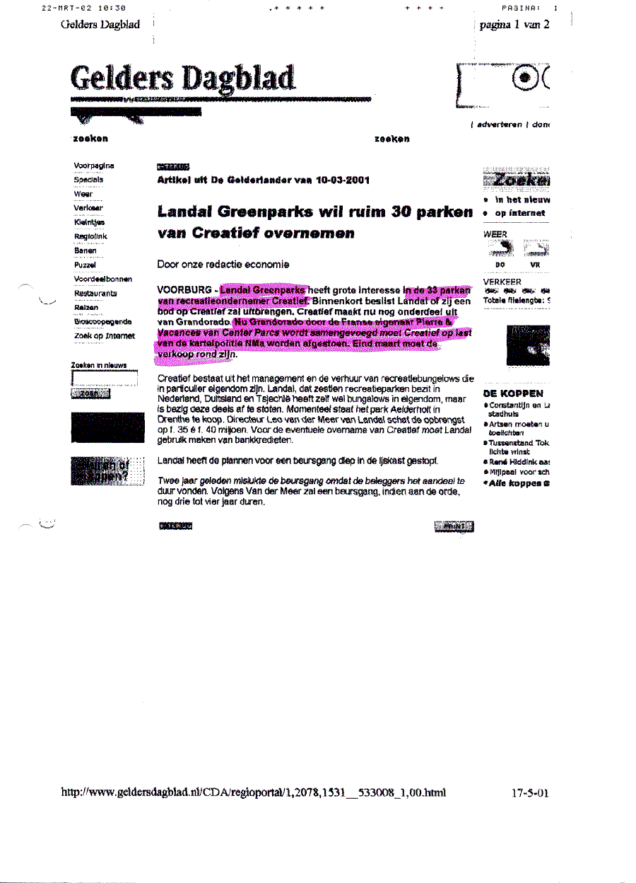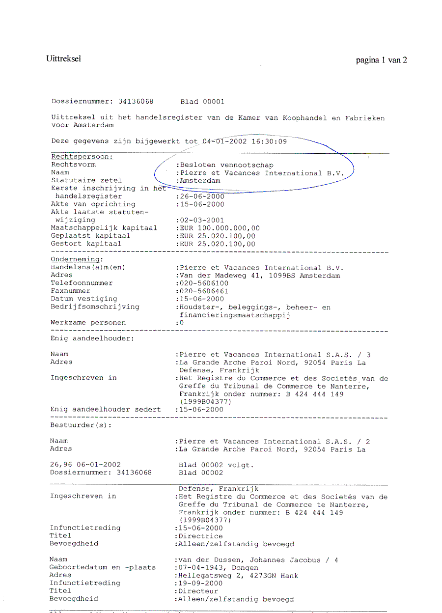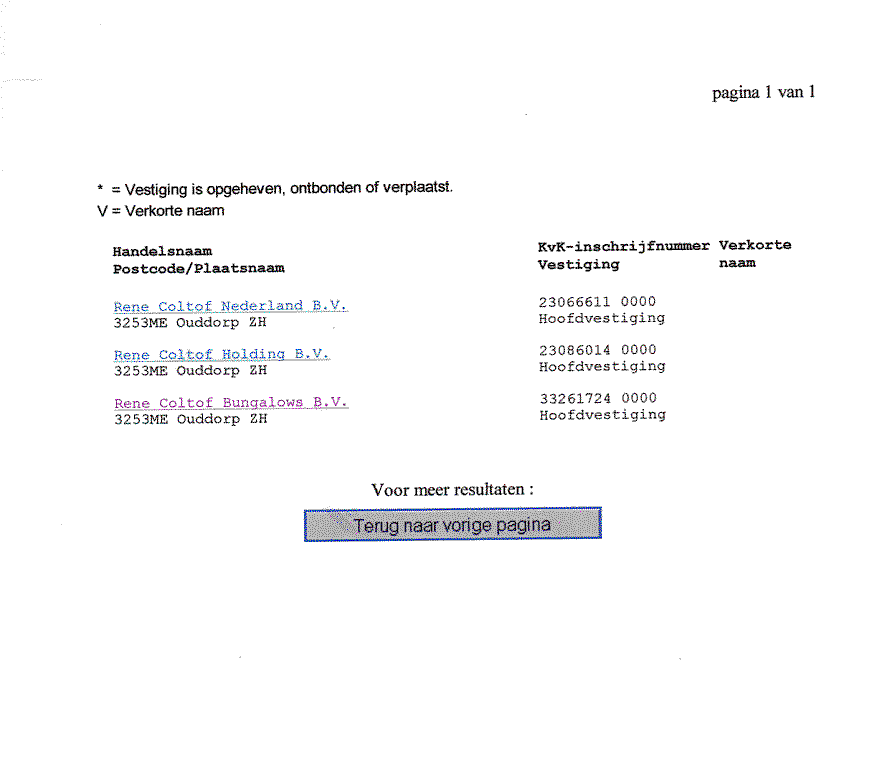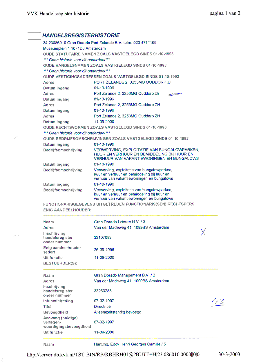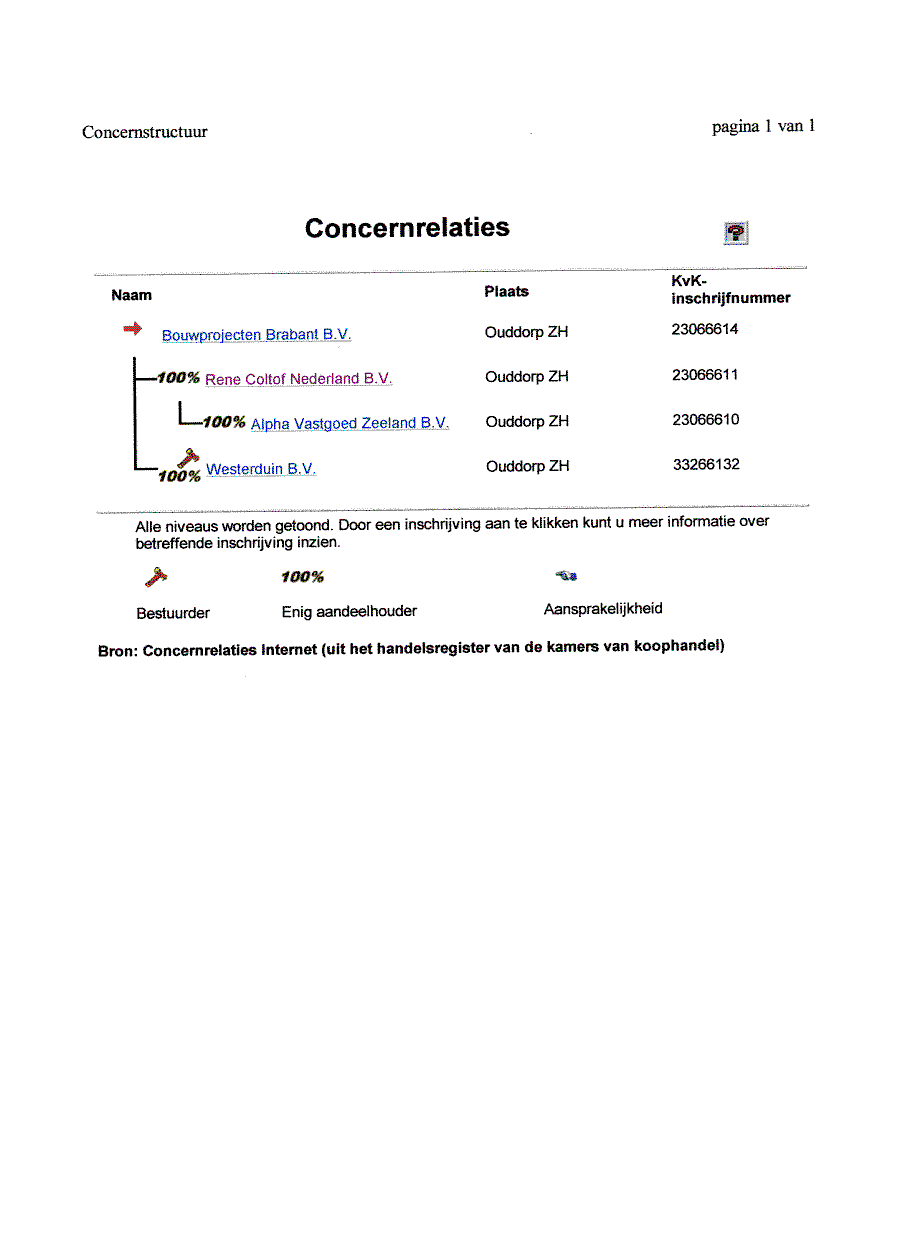 Kadastergegevens Kamer van Koophandel van conglomeraat van parken van Bergervoet sr.
