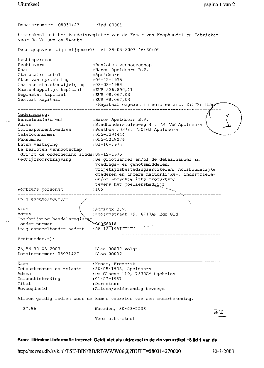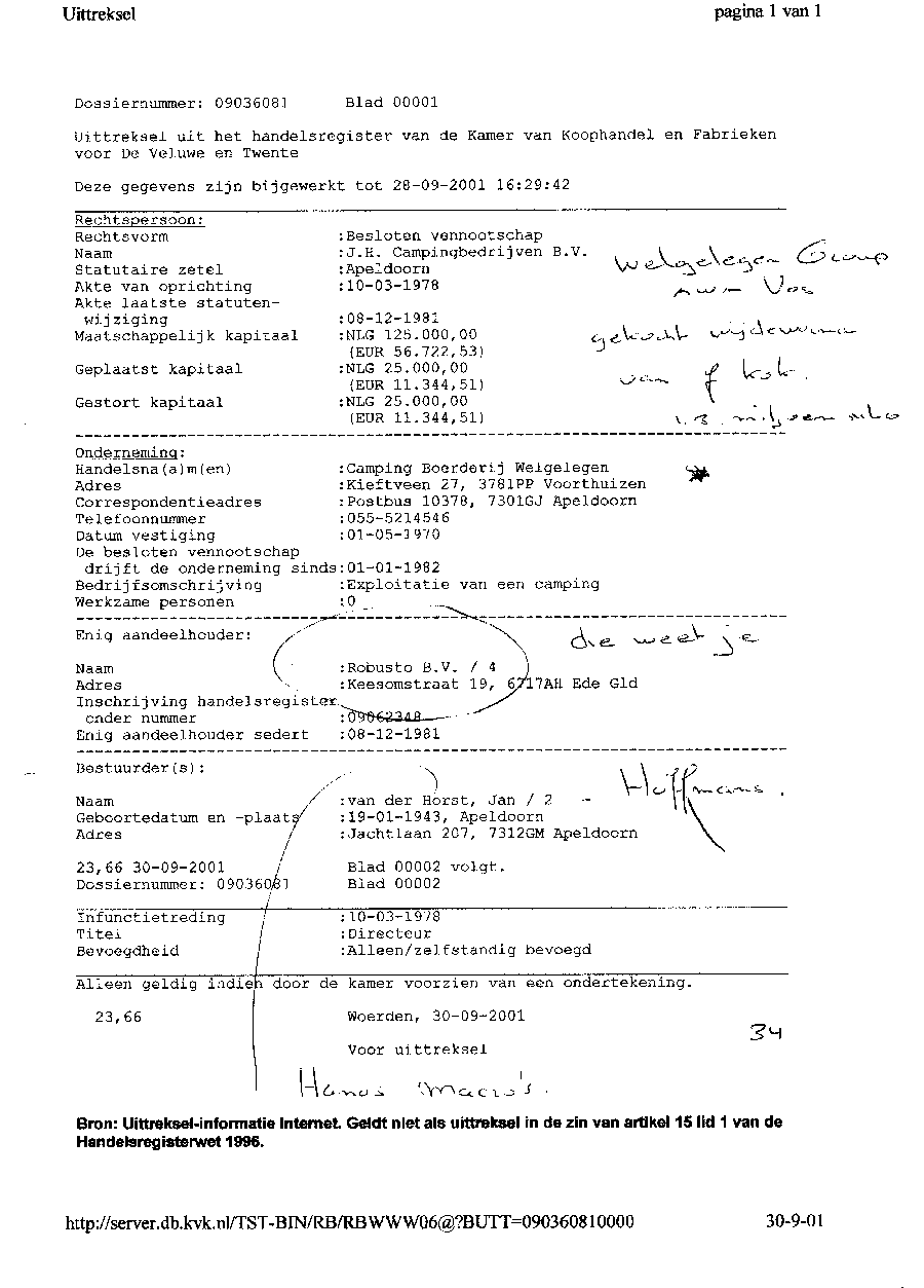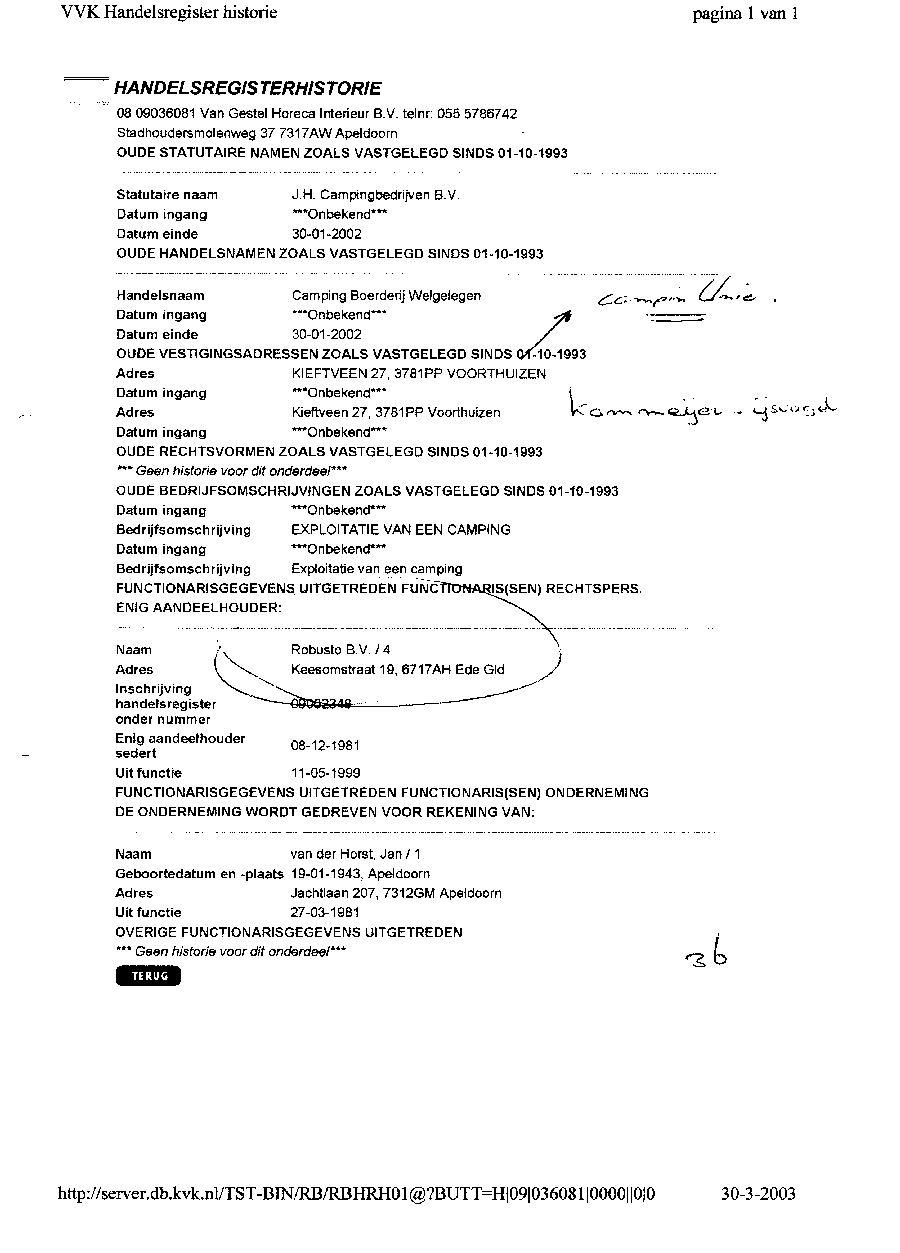 Kadastergegevens Kamer van Koophandel van conglomeraat van parken van Bergervoet sr.
