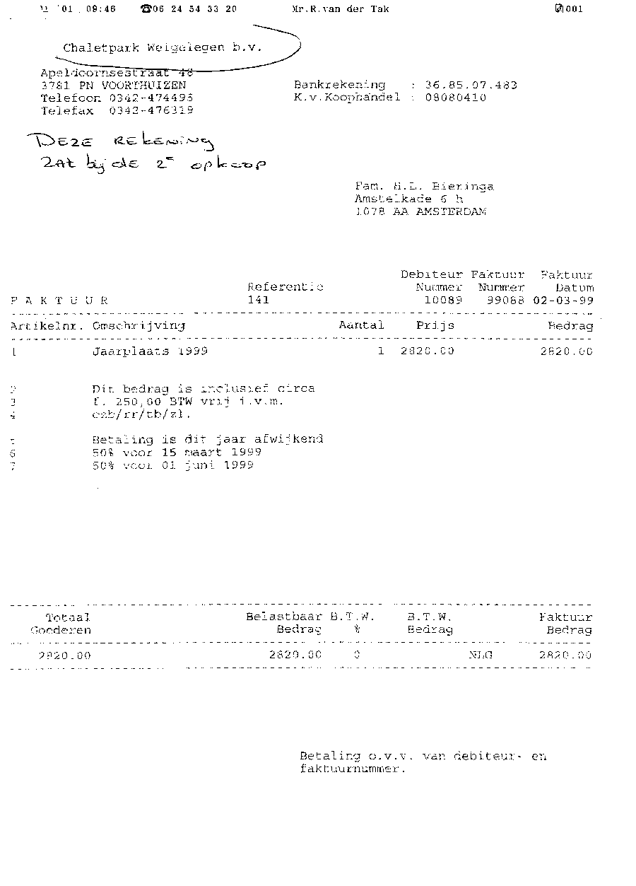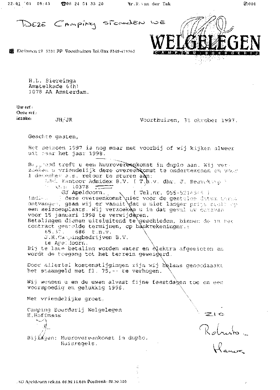 Faxbericht aan mr. Maes van Kees Griesdoorn over schijneisers