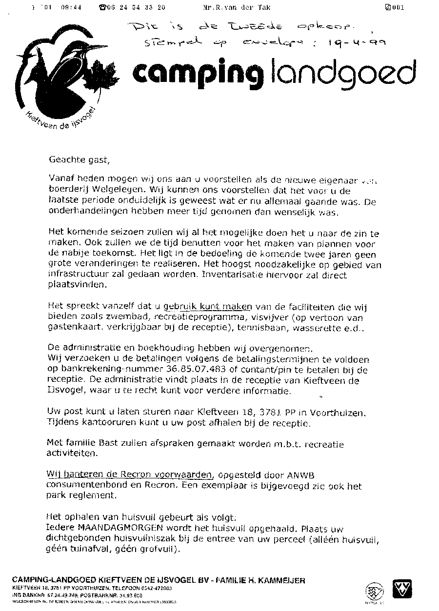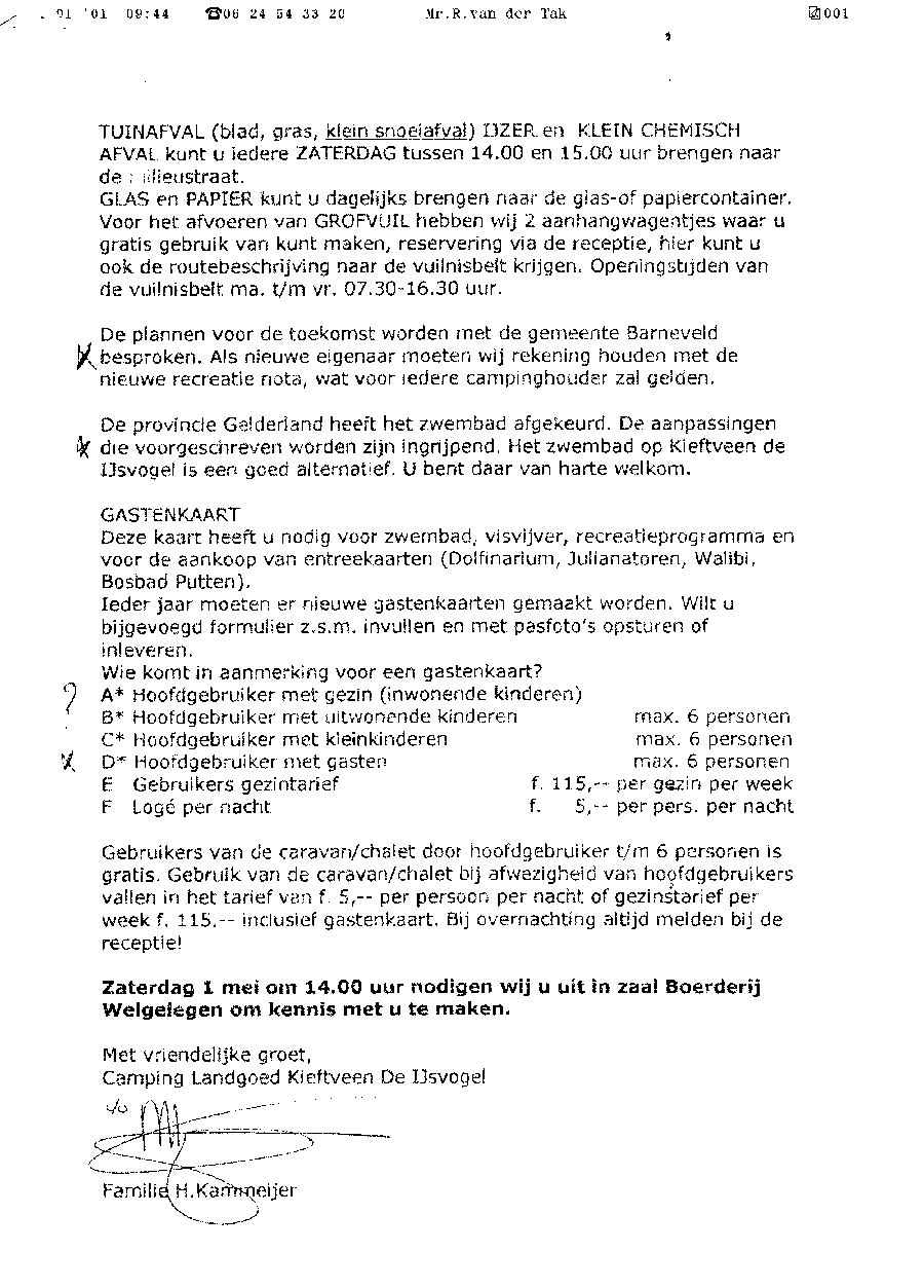 Voorlopige conclusie van Rietveld aan de recreanten en semi-permanente bewoners
