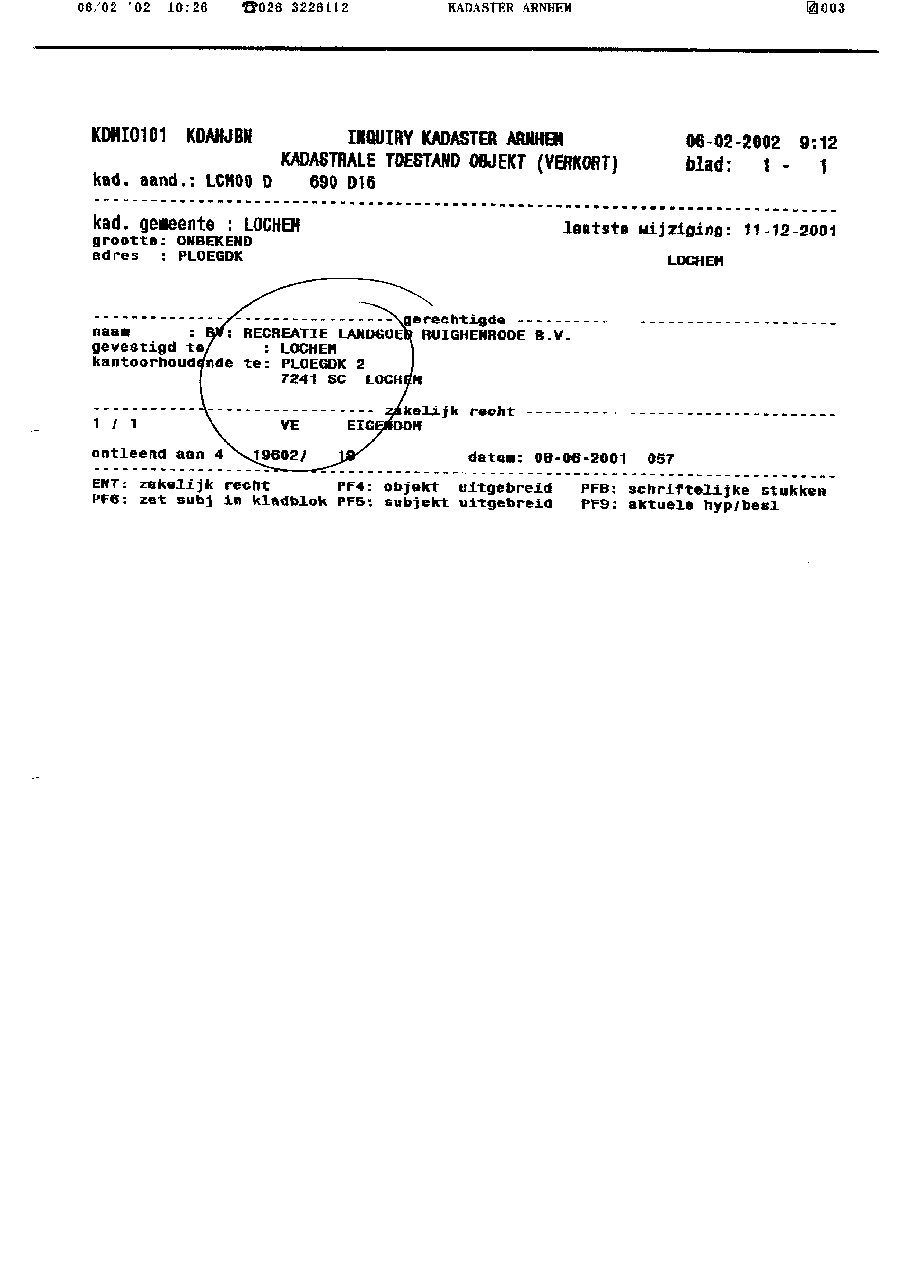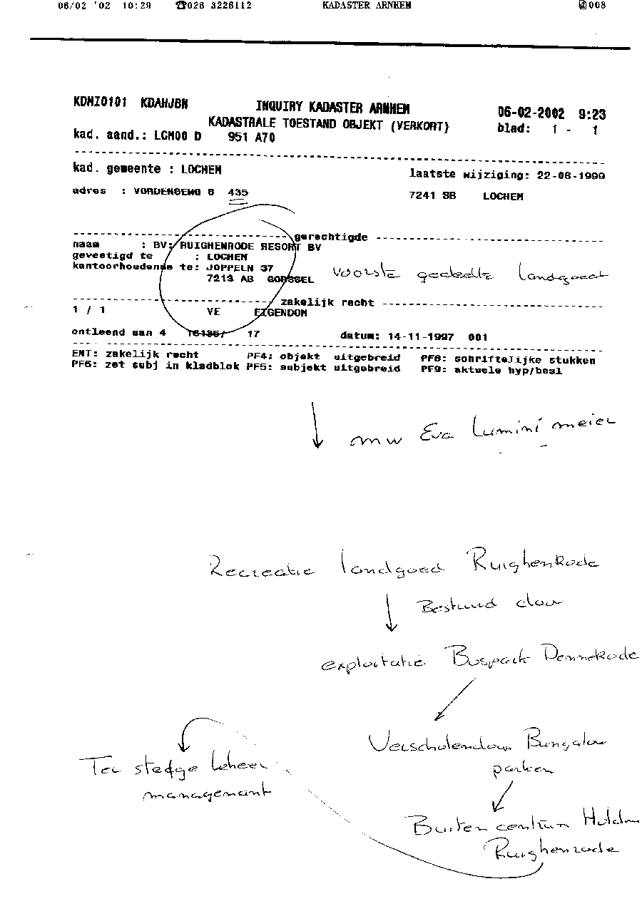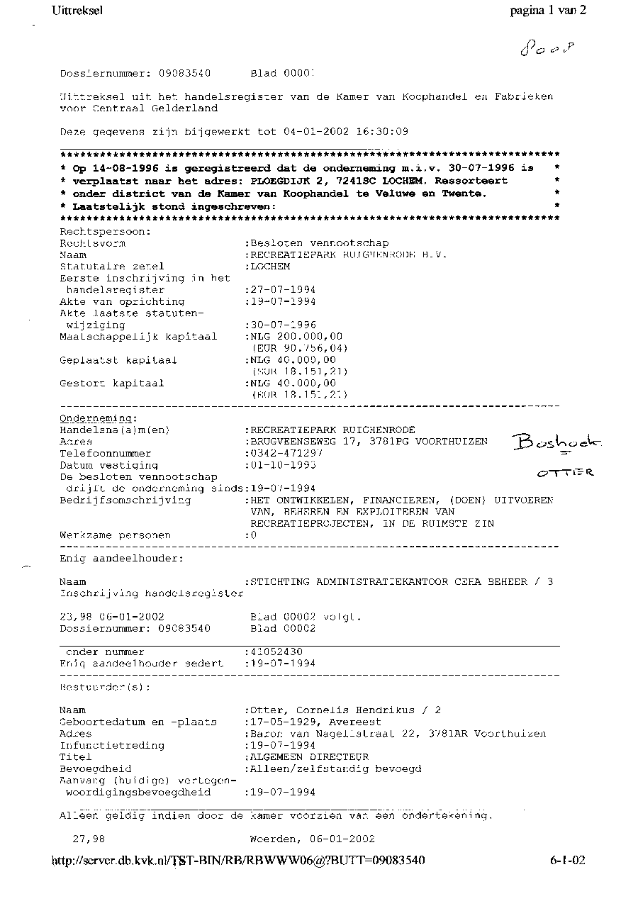 Kadastergegevens Kamer van Koophandel van conglomeraat van parken van Bergervoet sr.