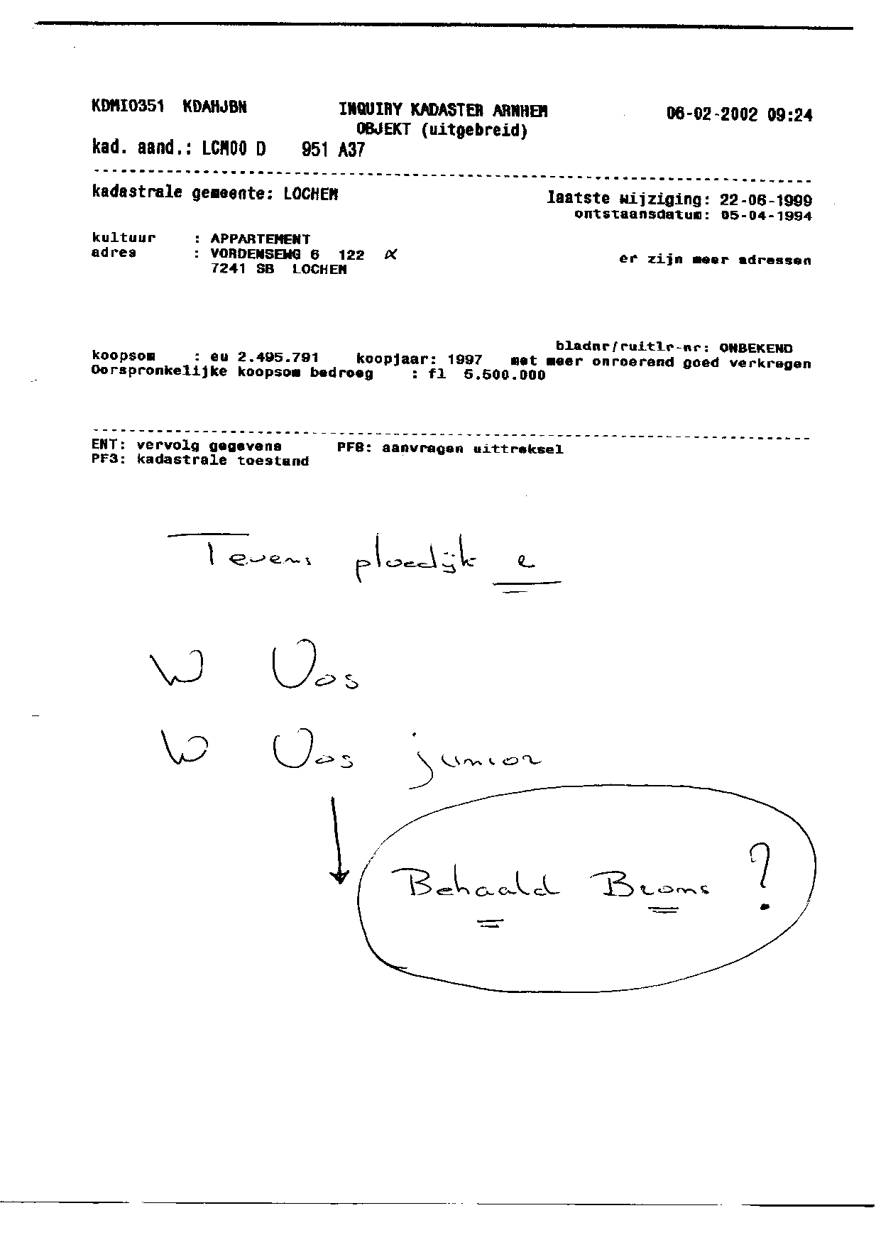 Kadastrale gegevens en in- en uitschrijvingen bij de Kamer van koophandel