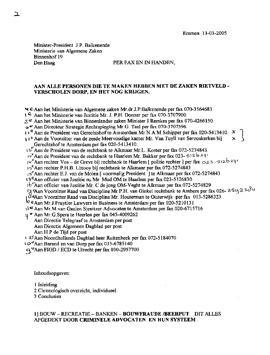 Faxbericht aan mr. Maes van Kees Griesdoorn over schijneisers
