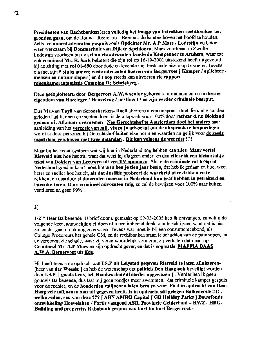 Document met procedure tegen mr. Maes van Dommerholt & van Dijk in Zwolle