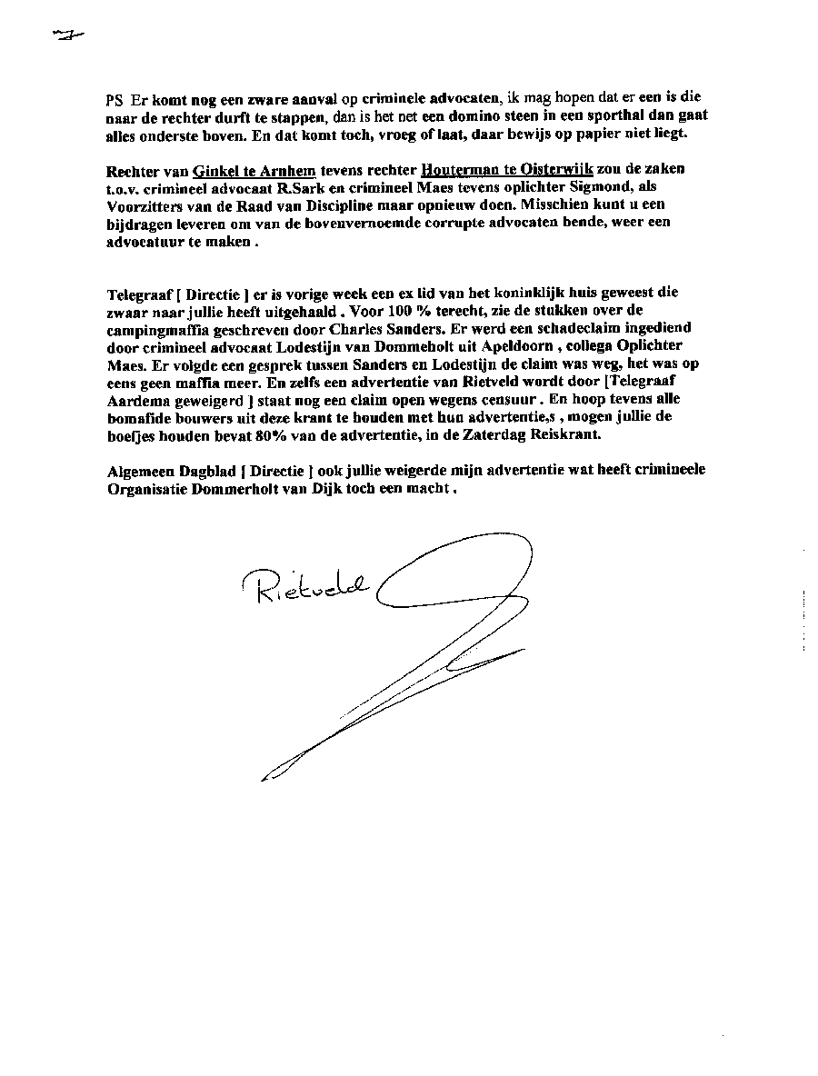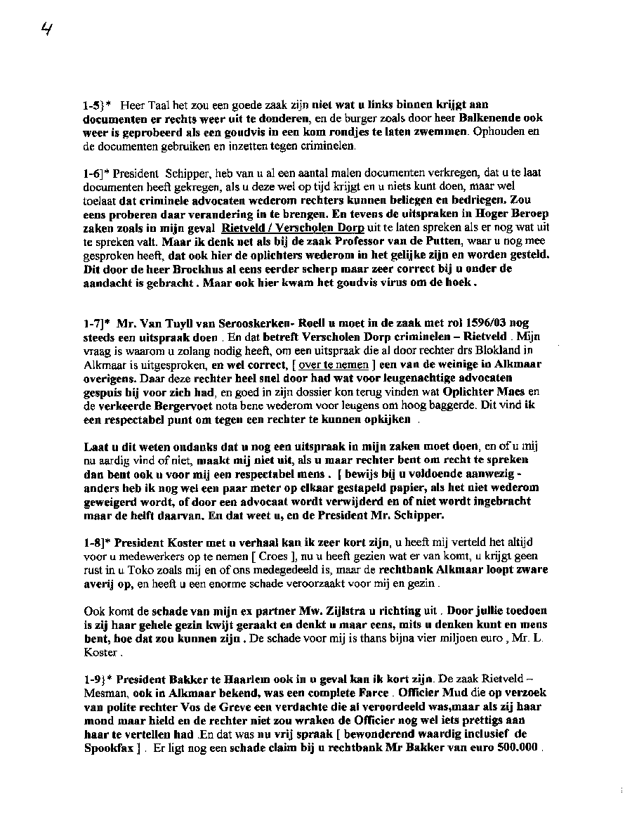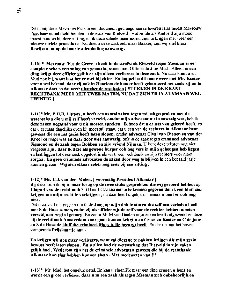 Een serie losse aantijgingen tegen mij (Rietveld) wegens onjuiste, vermeende kwalijke zaken