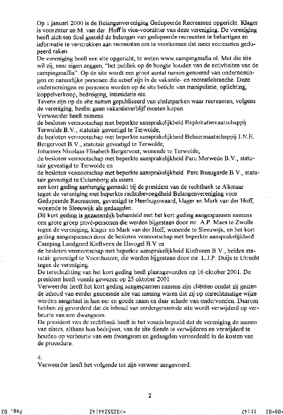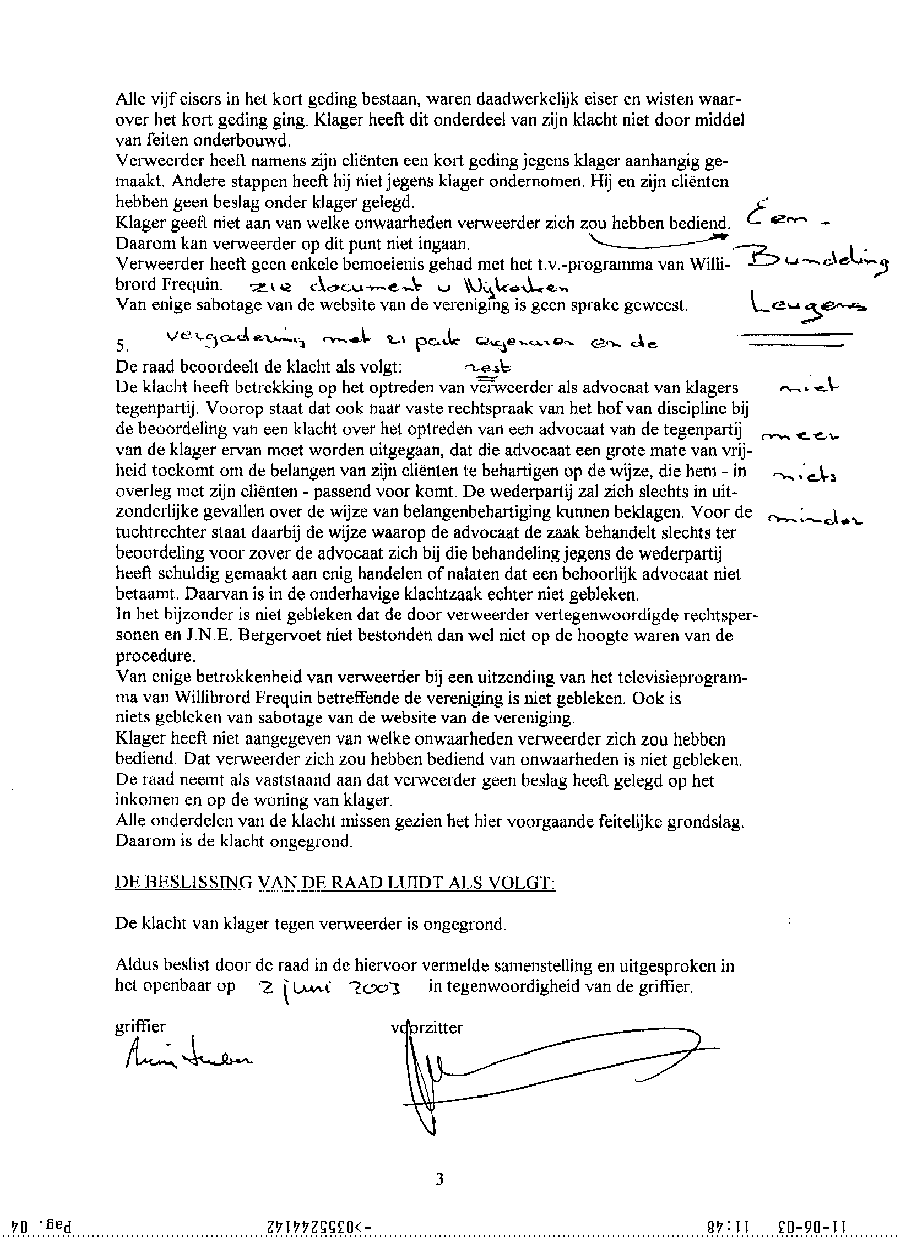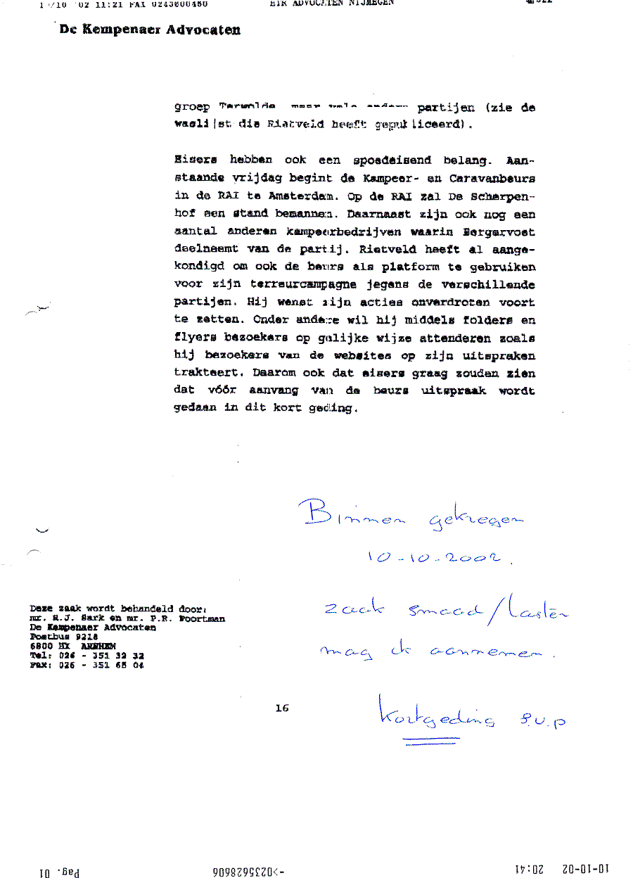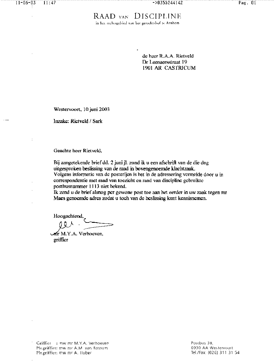 Document met procedure tegen mr. Maes van Dommerholt & van Dijk in Zwolle