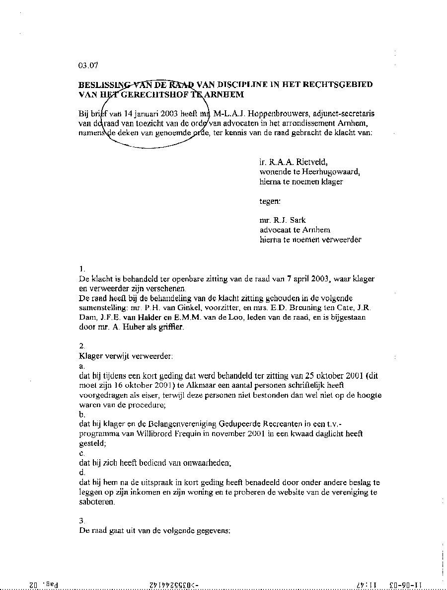 Zwendelpraktijken van mr. R.J. Sark van De Kempenaer Advocaten in Arnhem