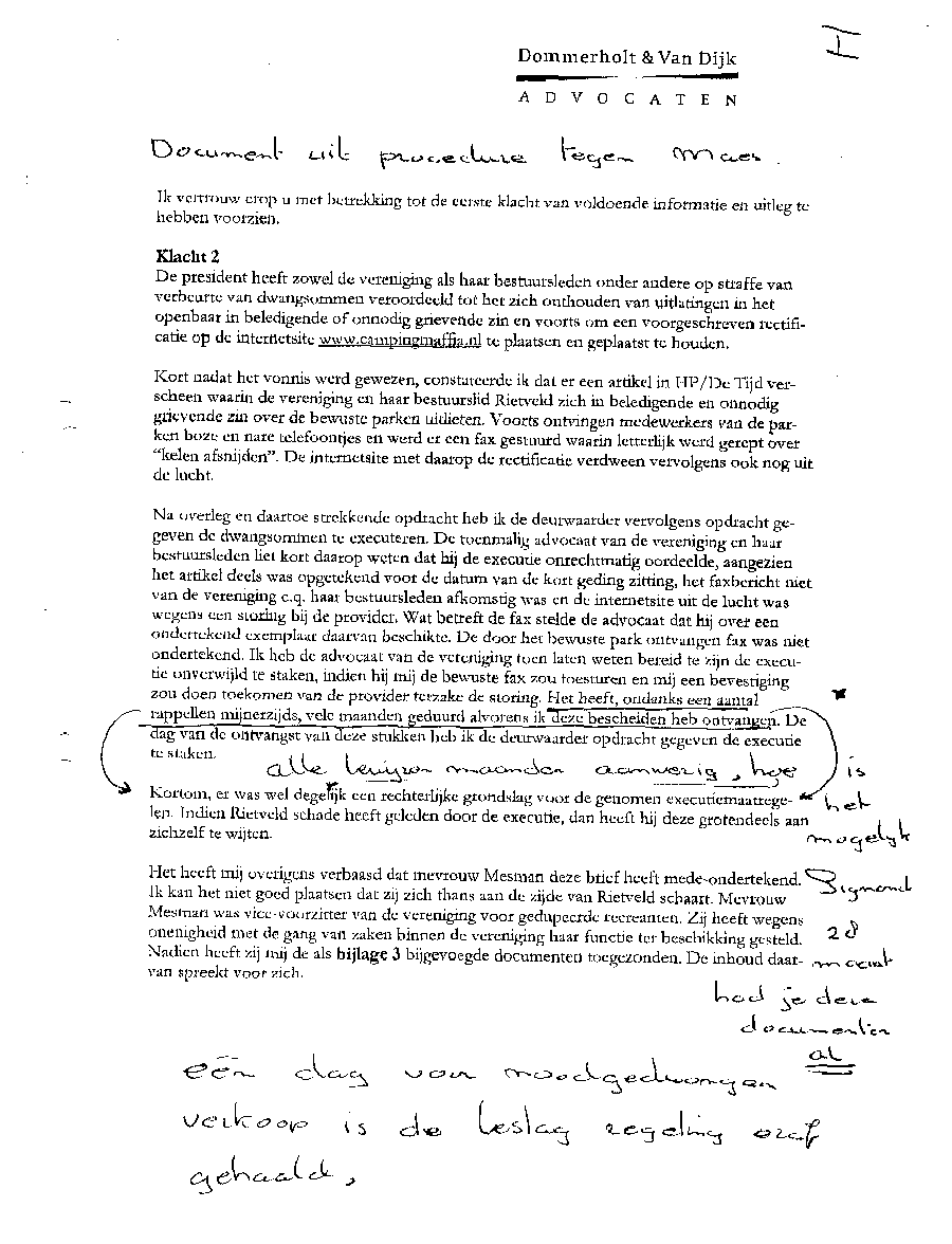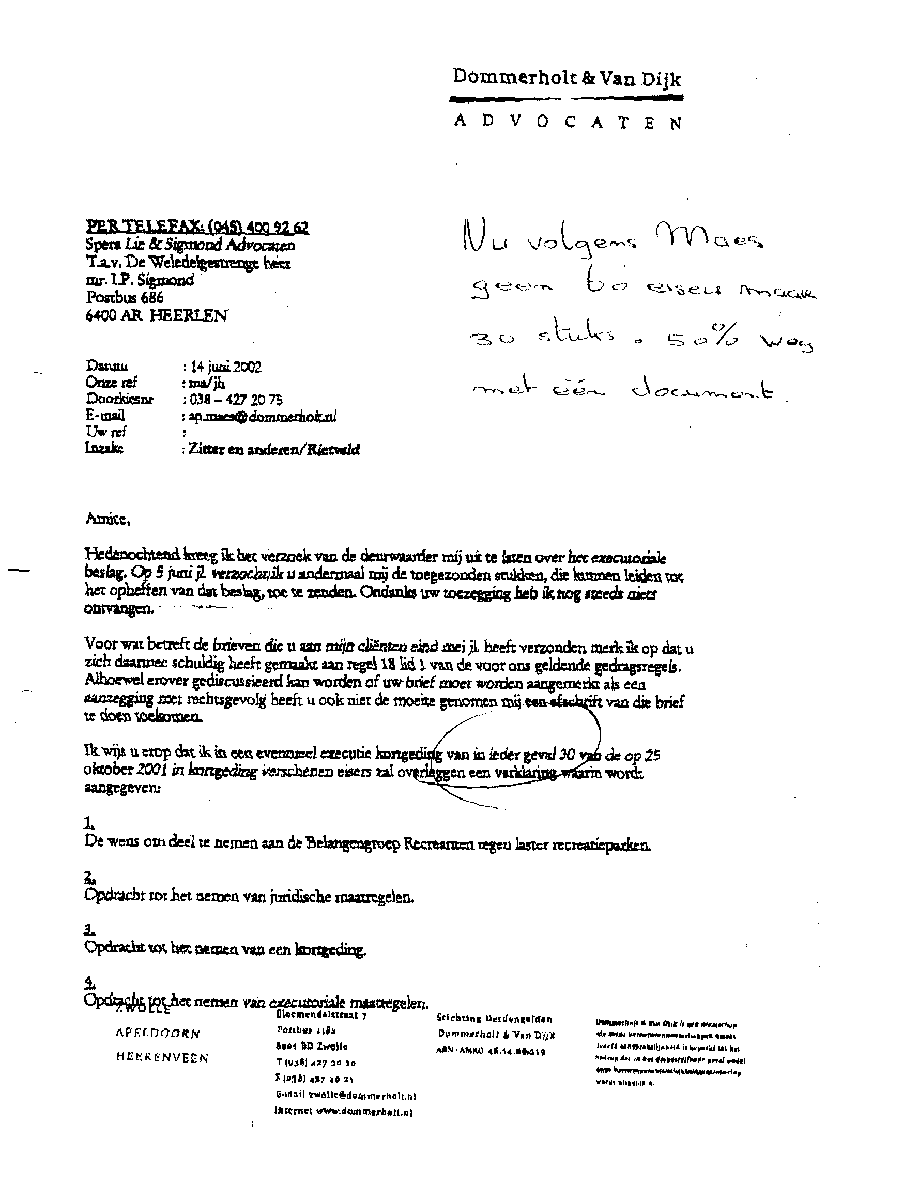 Document met procedure tegen mr. Maes van Dommerholt & van Dijk in Zwolle