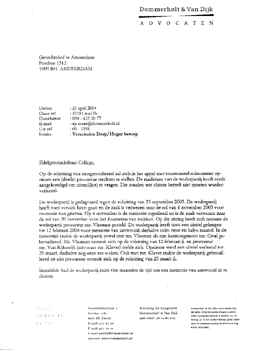 Dommerholt van Dijk Advocaten te Zwolle Bloemendalstraat 7, 8001 BD Zwolle Tel.: 038-4272077 en Fax.: 038-4272021