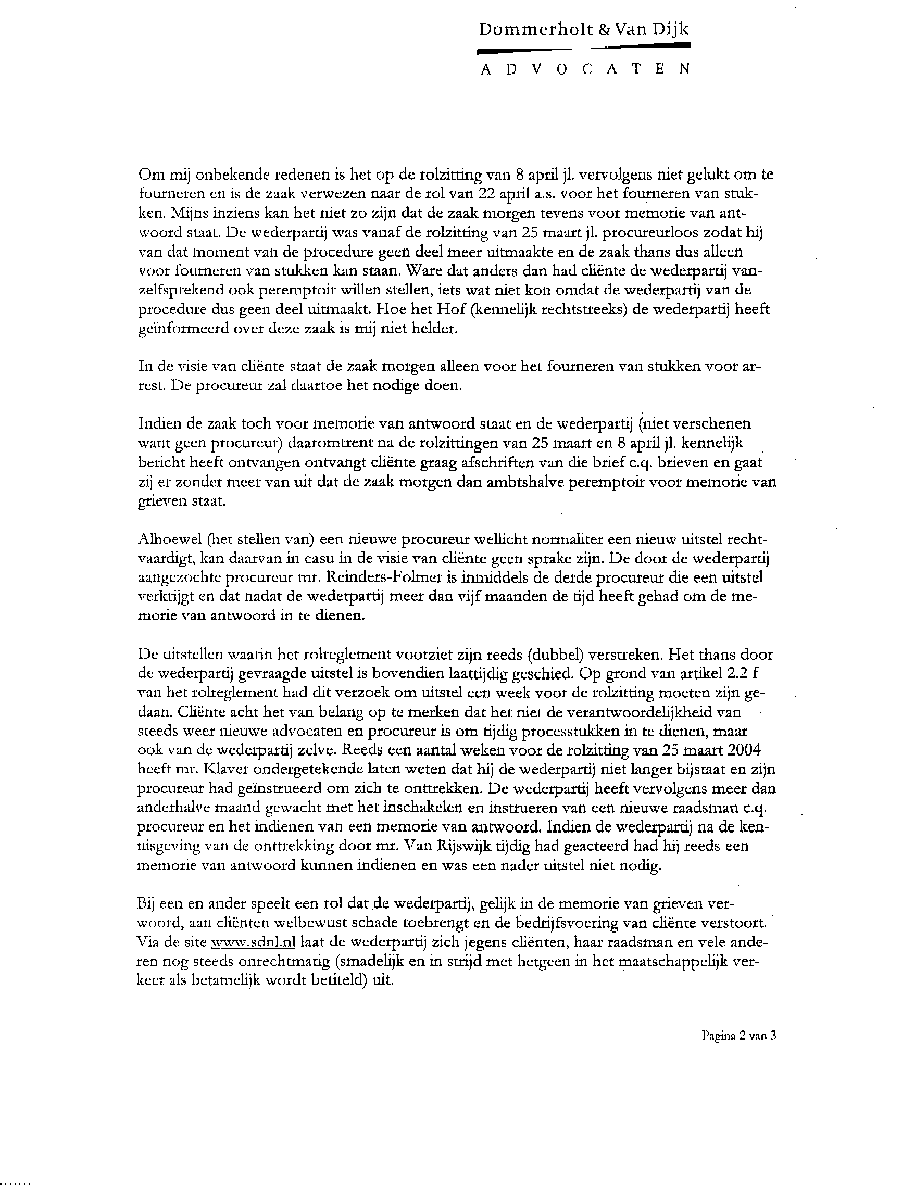 Briefwisseling van advocatenkantoor Dommerholt & van Dijk en st. SDN