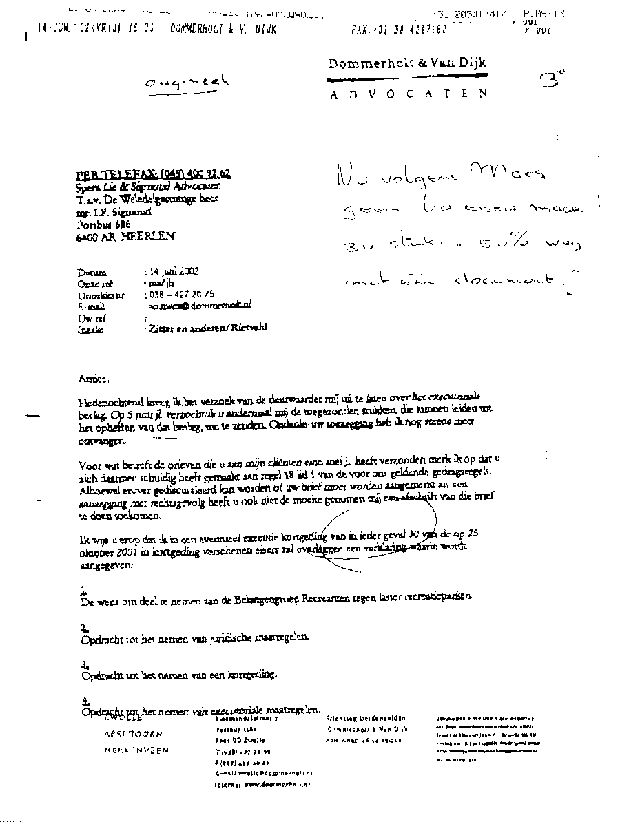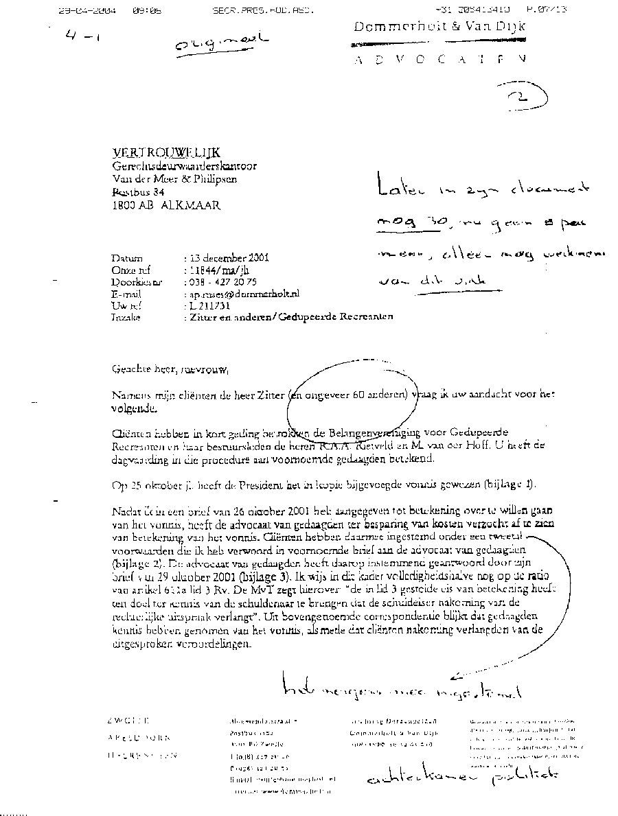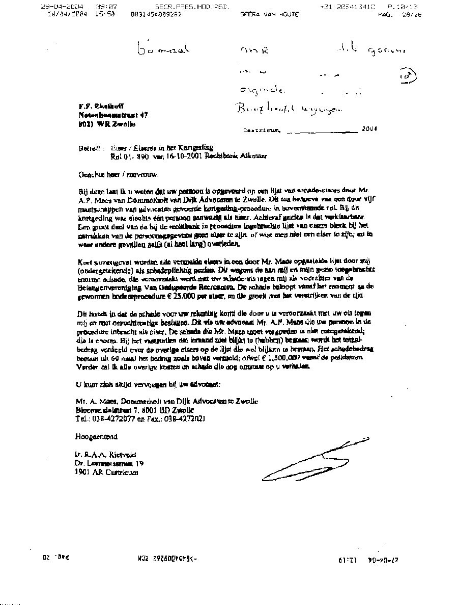 Document met procedure tegen mr. Maes van Dommerholt & van Dijk in Zwolle