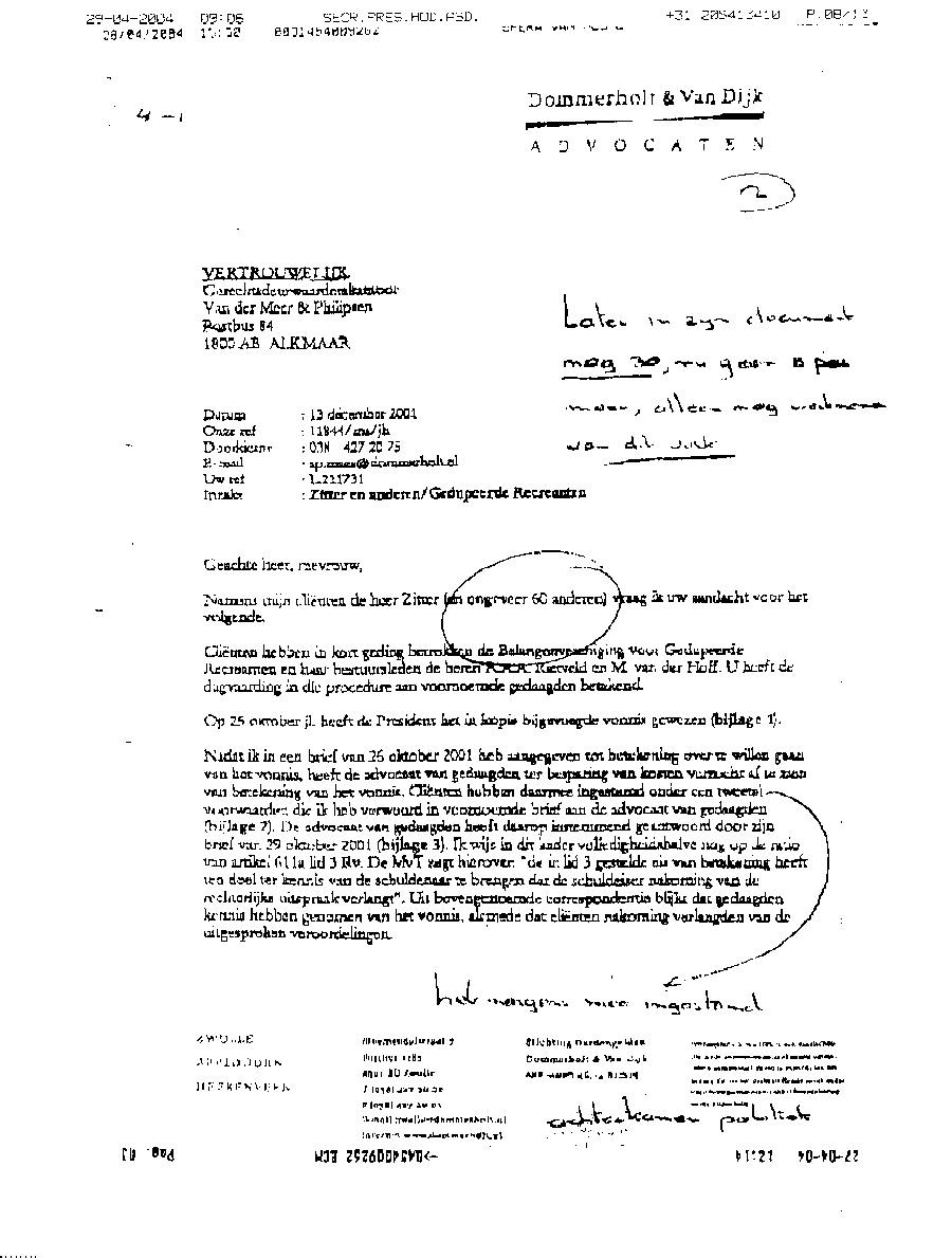 Briefwisseling van advocatenkantoor Dommerholt & van Dijk en st. SDN