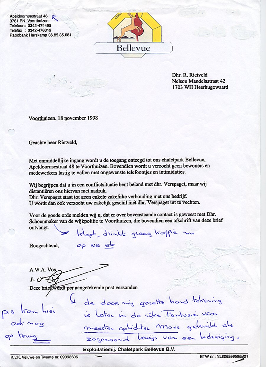 Brief aan SDN met de sommatie om de website van Rietveld te verwijderen