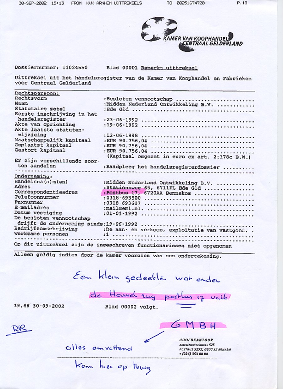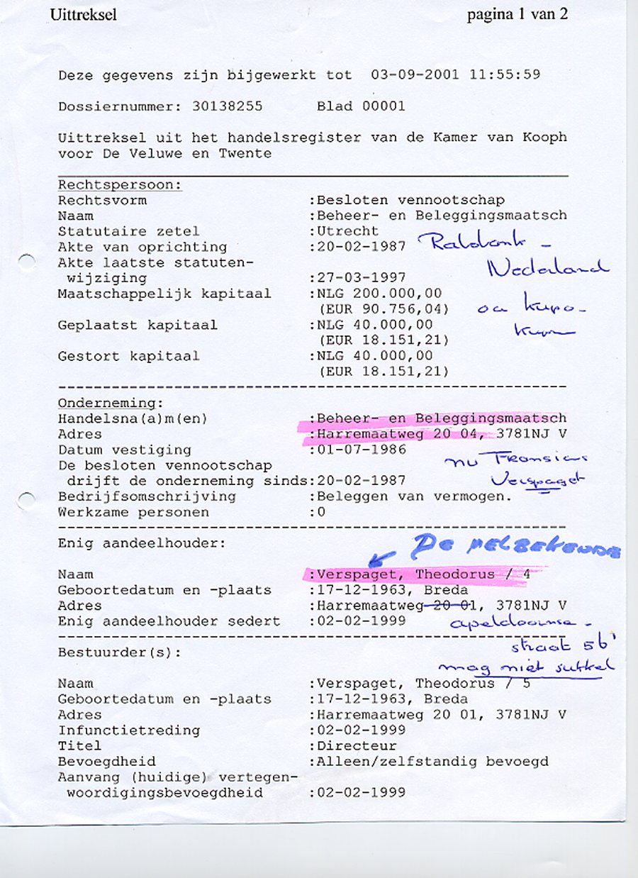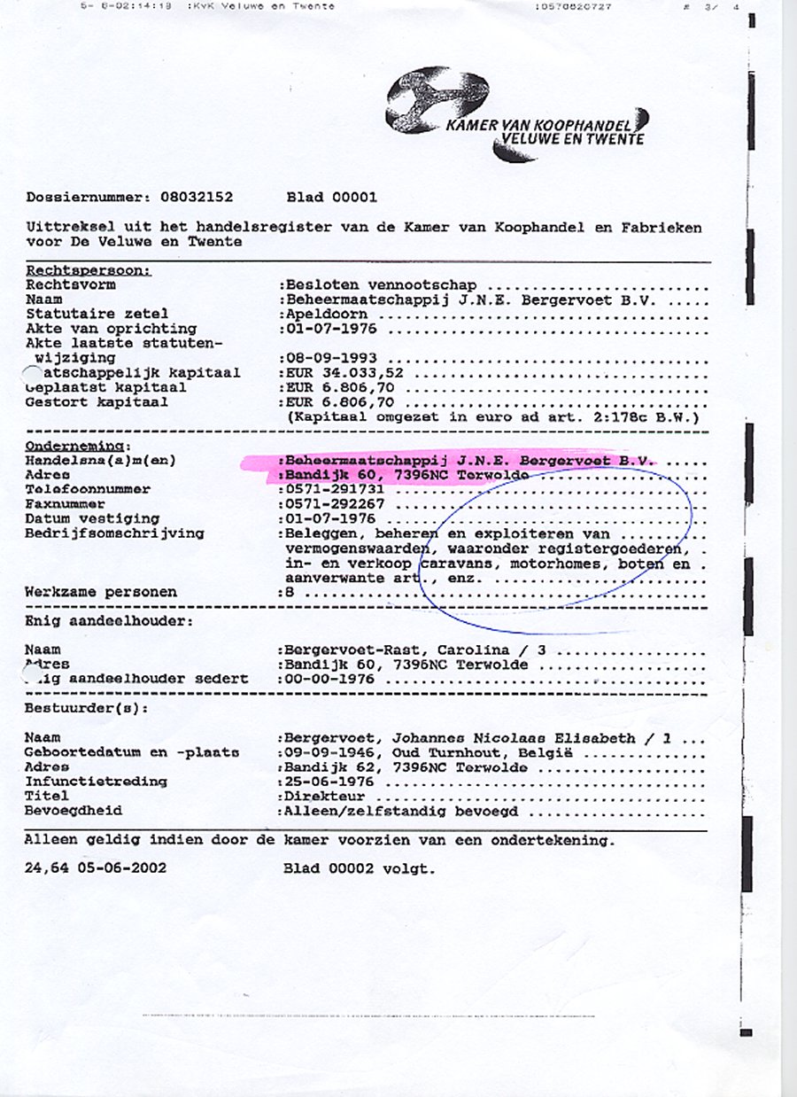 Kadastergegevens Kamer van Koophandel van conglomeraat van parken van Bergervoet sr.