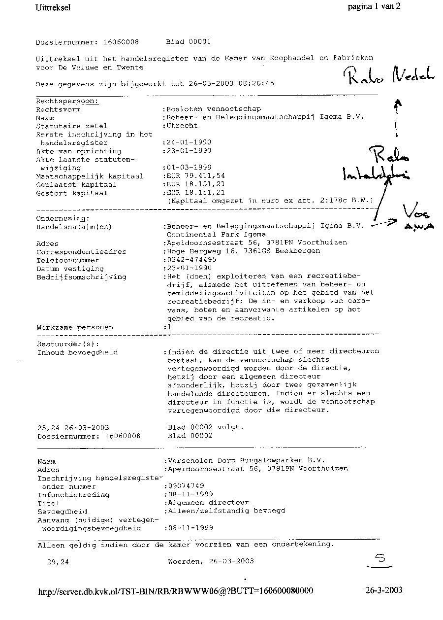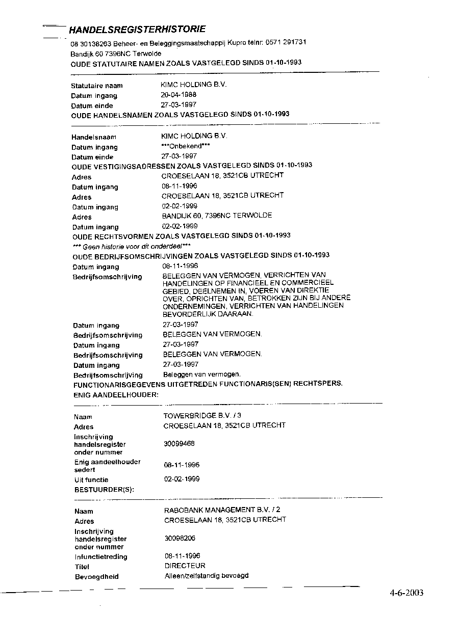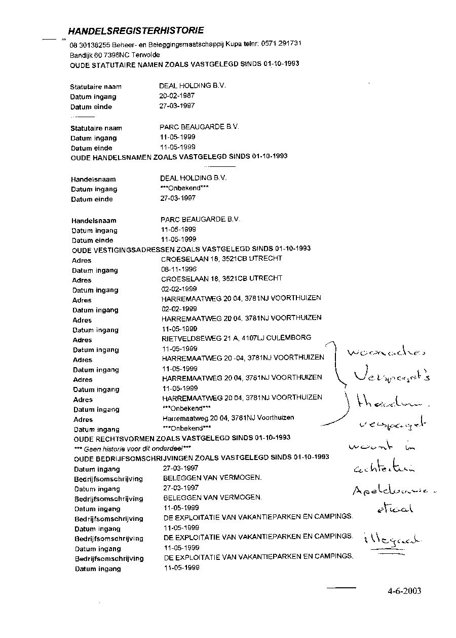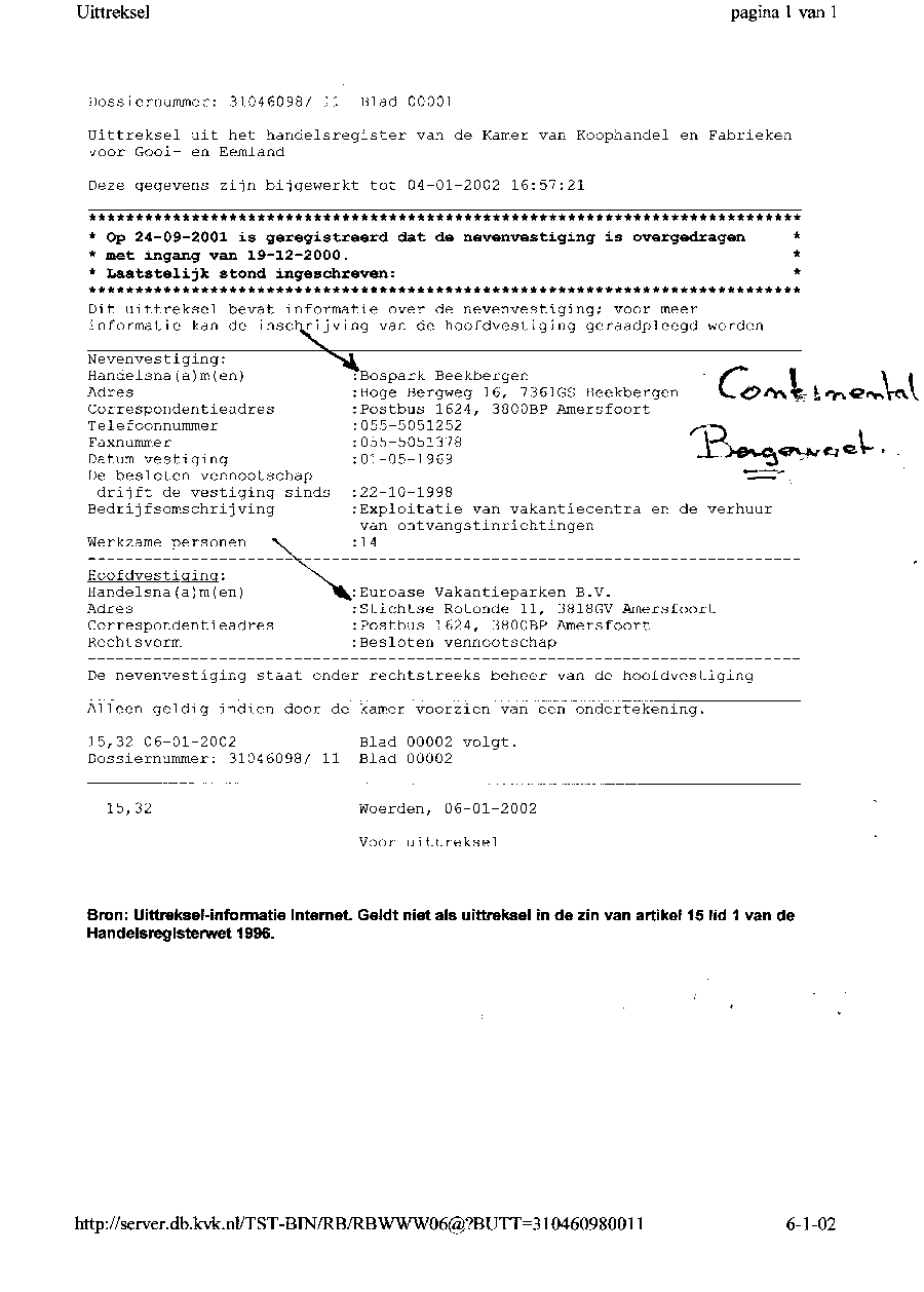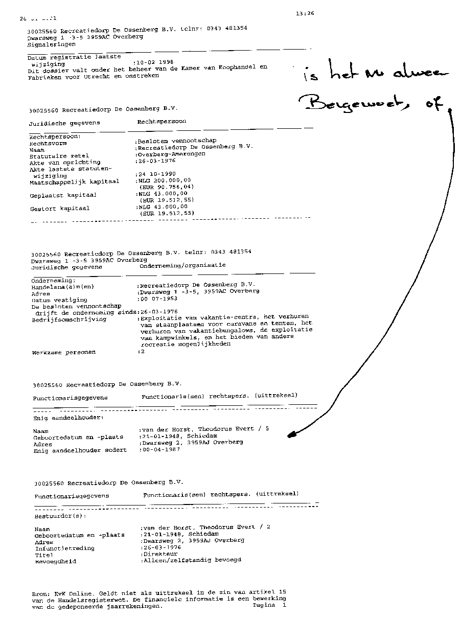 Kadastergegevens Kamer van Koophandel van conglomeraat van parken van Bergervoet sr.