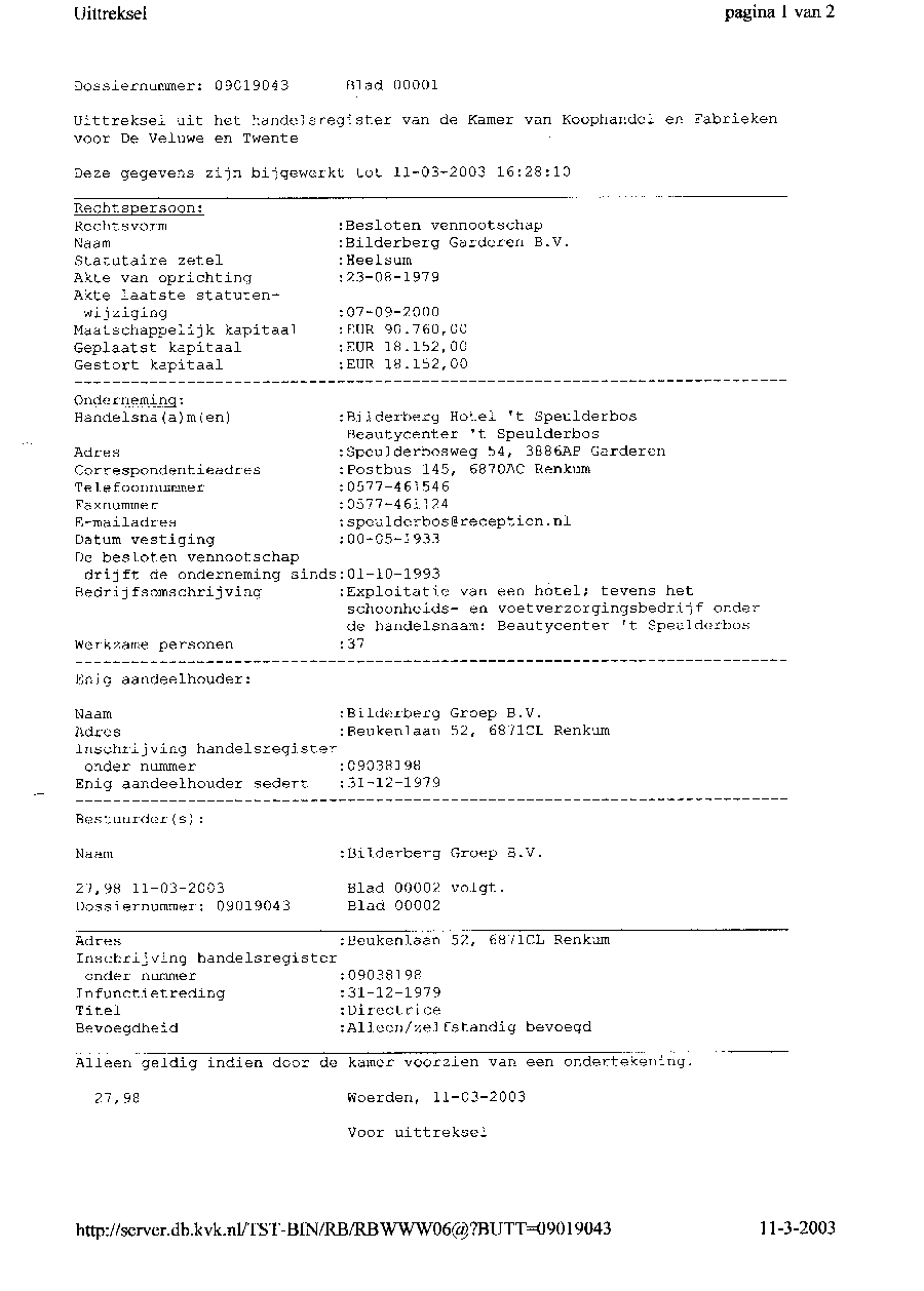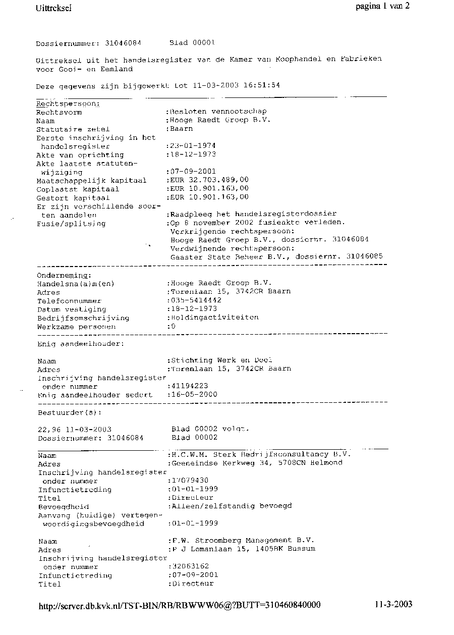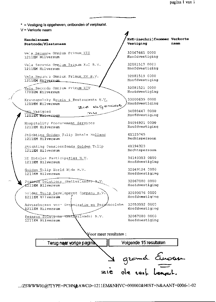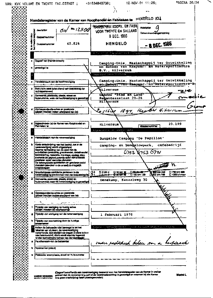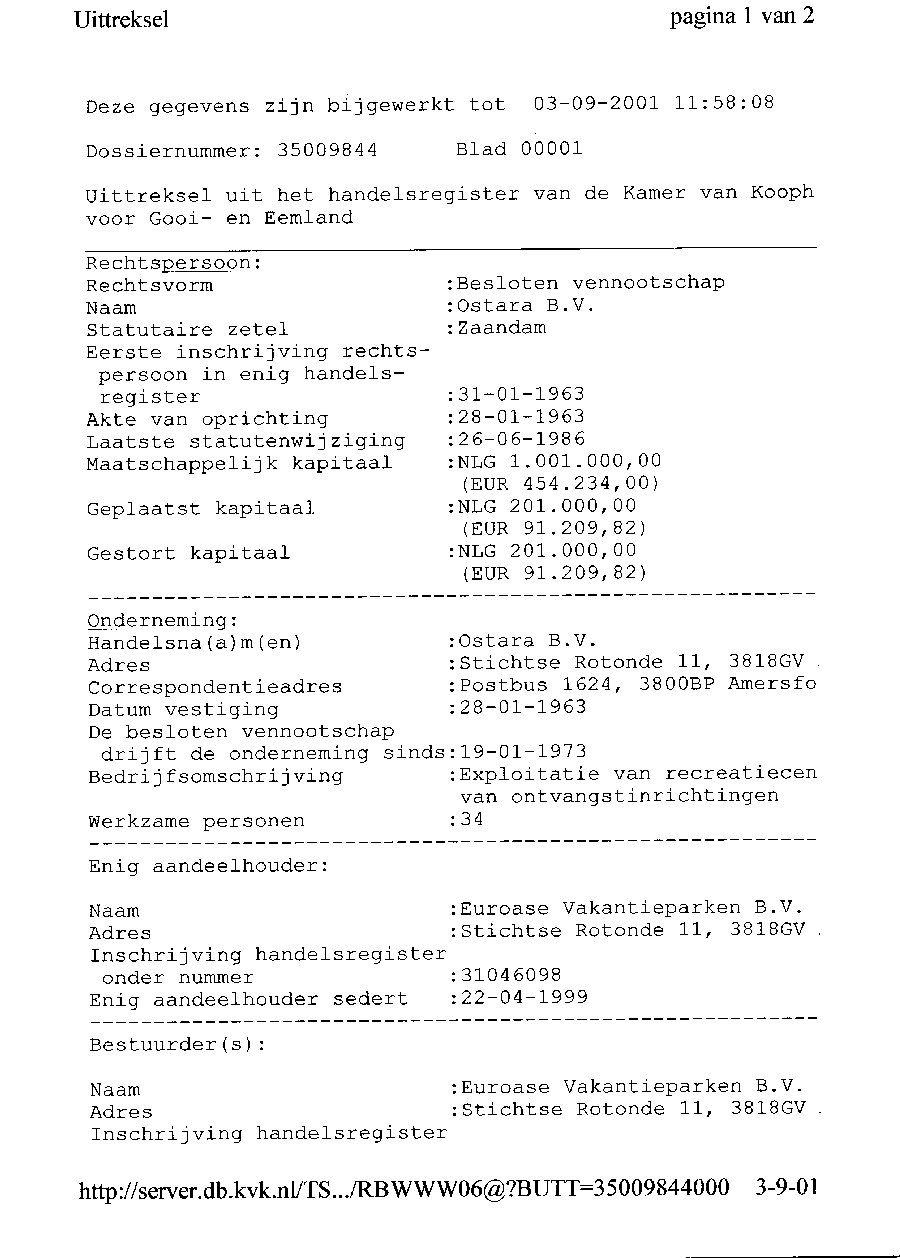 Kadastergegevens Kamer van Koophandel van conglomeraat van parken van Bergervoet sr.