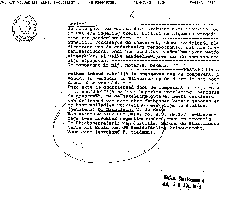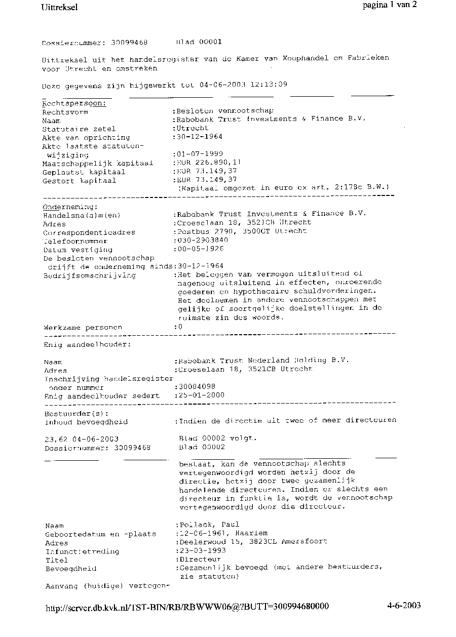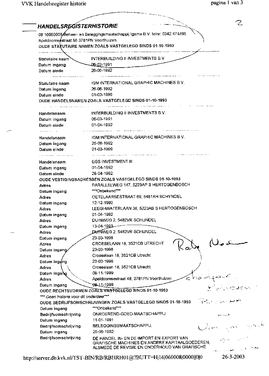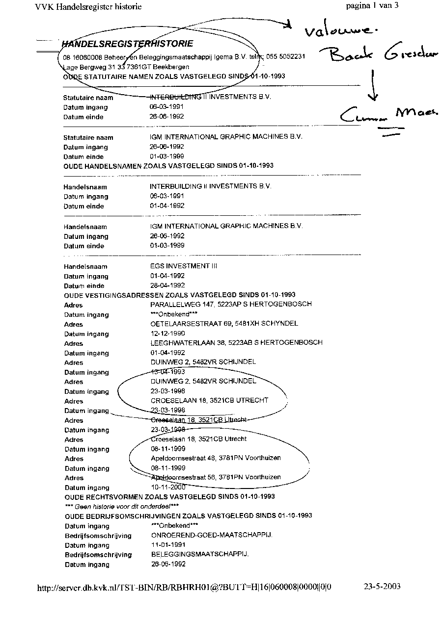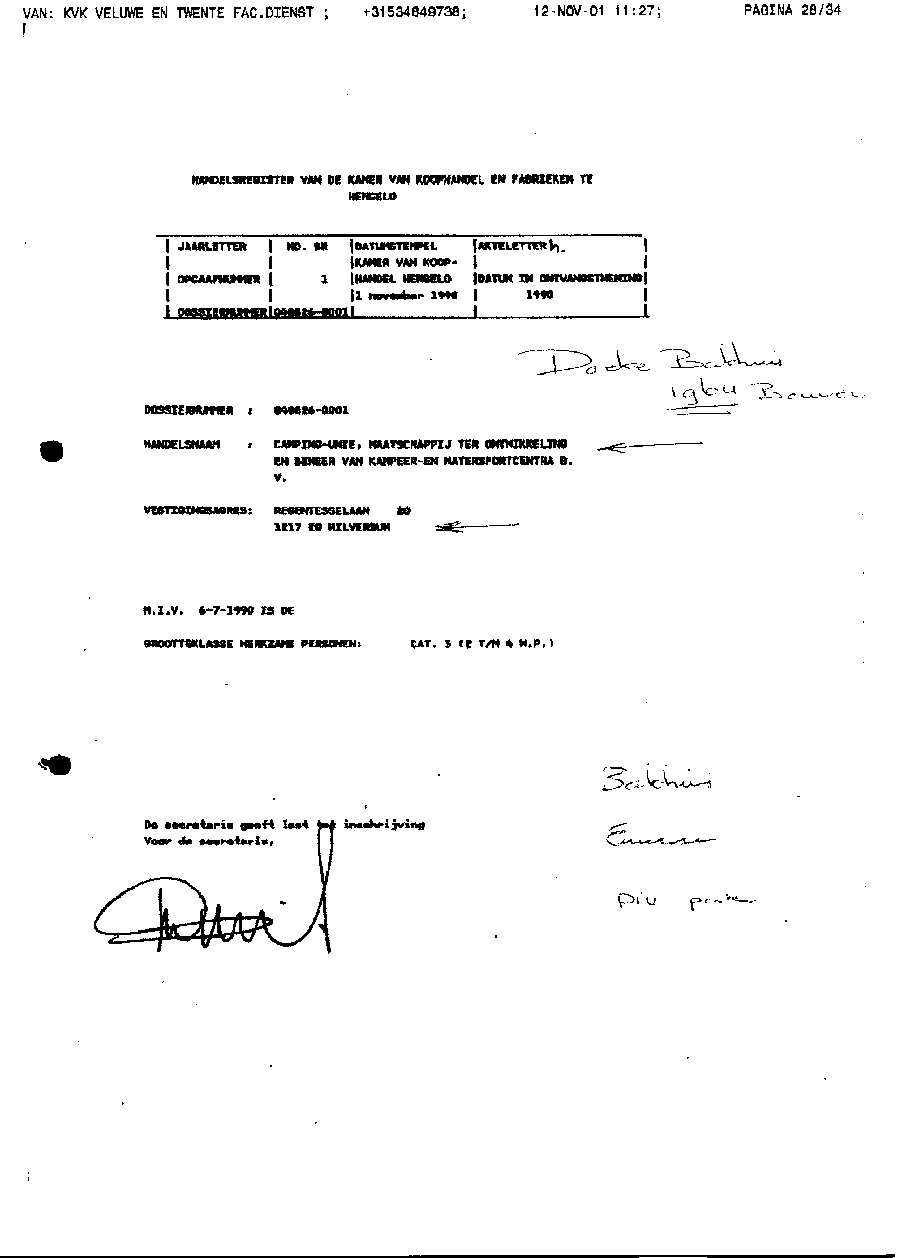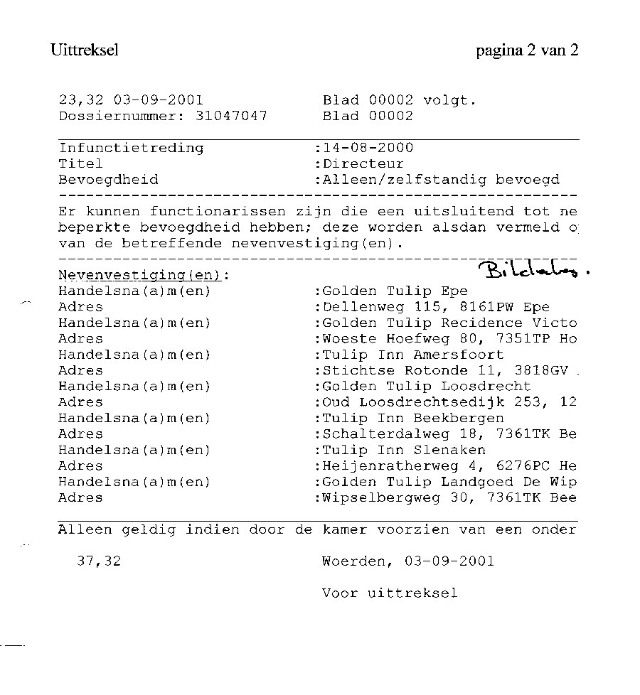 Kadastergegevens Kamer van Koophandel van conglomeraat van parken van Bergervoet sr.