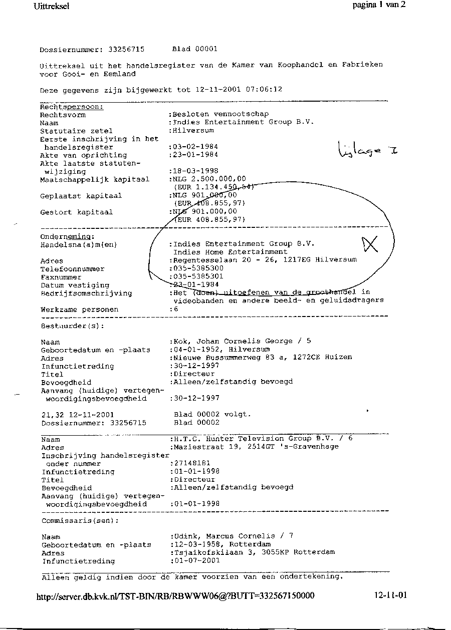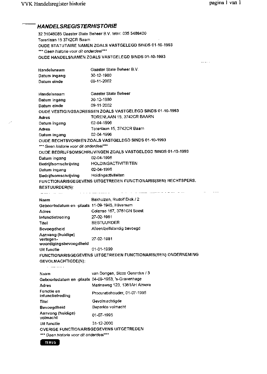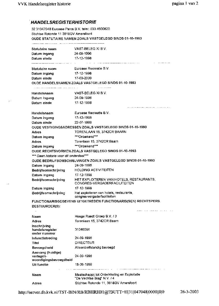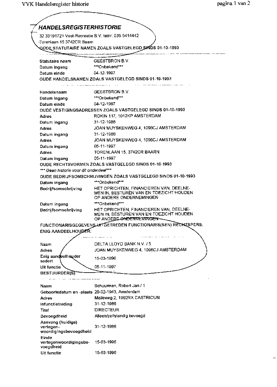 Achtergrond over de handelsregisterhistorie van Aegon Recreatie BV